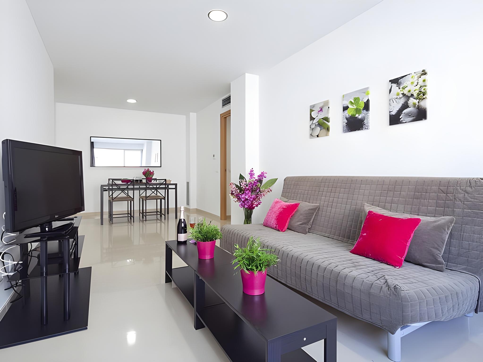 These apartments boast a prime position in the Paralel Avenue area, being very convenient for both business travellers and tourists travelling to Barcelona. The Fira de Barcelona is a few metro stops away or 20 minutes on foot and the famous Ramblas and the harbour are easily reachable in a walk shorter than 10 minutes. Visitors will not have to go too far to take the metro, as there is one stop just a few steps away from the apartments. The luminous and spacious accommodation units are ideally fitted to make guests feel completely at ease. They boast a cheery and modern look in white tones and some colourful touches. The staff will help its visitors with information about the city and will provide them with a city map. Visitors can also benefit from the complimentary wireless Internet connection to use with their mobile phone or laptop.