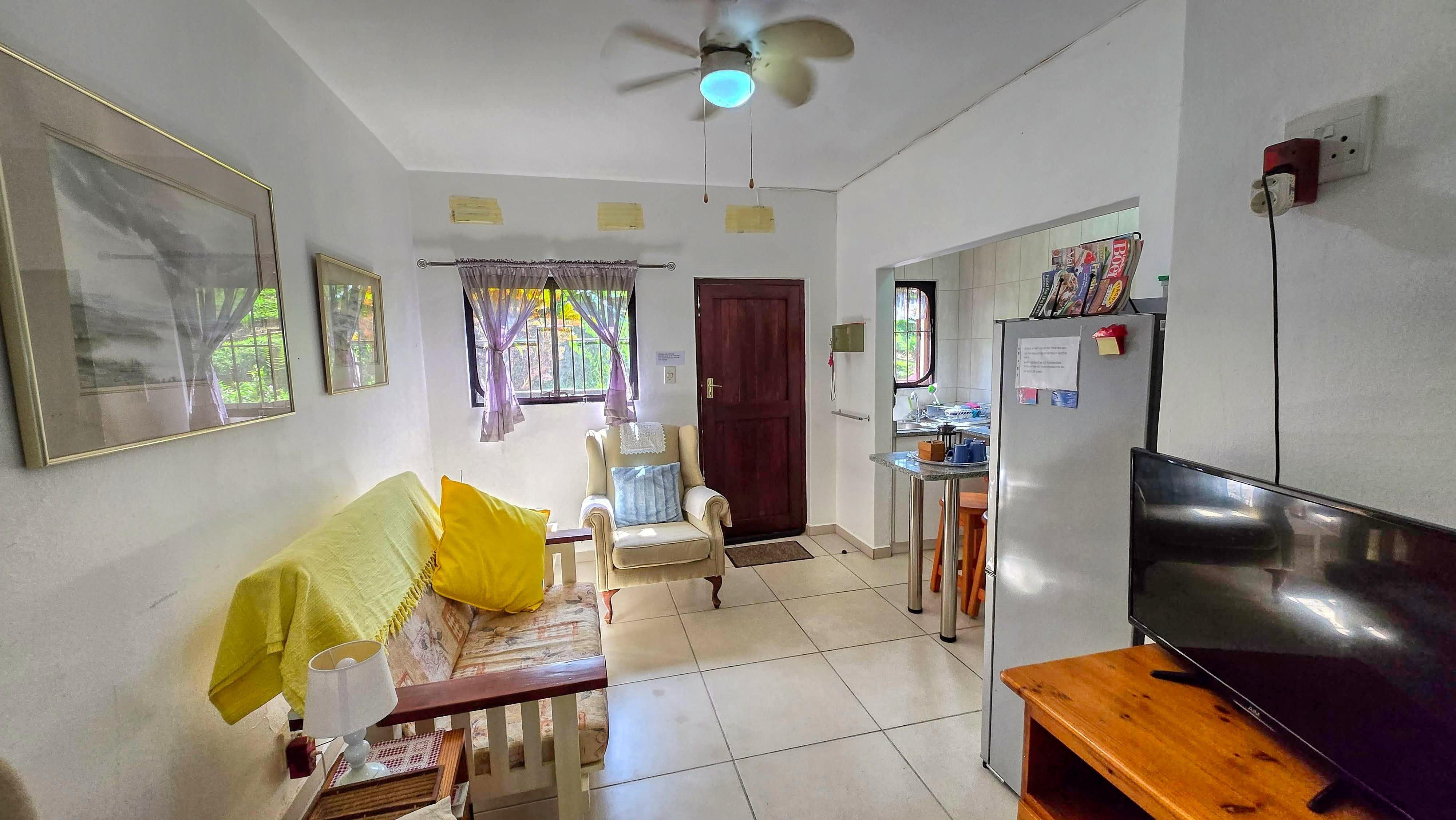 Cozy Holiday Flat Near the Lagoon – RAMSGATETucked away in a peaceful part of Ramsgate, just a short drive from the scenic Ramsgate/Southbroom Lagoon, this charming holiday flat offers a relaxed and private getaway for couples, small families, or solo travellers.Located beneath a private home (not in a complex), the flat features its own private entrance and can comfortably accommodate up to three guests. It offers two inter-leading bedrooms that share a modern shower bathroom—the main bedroom is furnished with a king-size bed, and the second bedroom has a single bed.