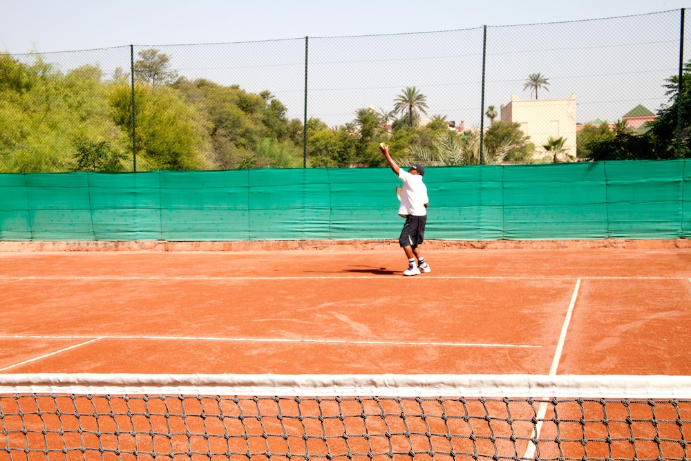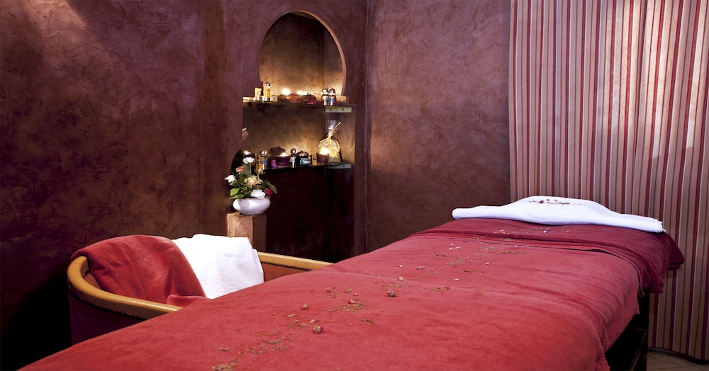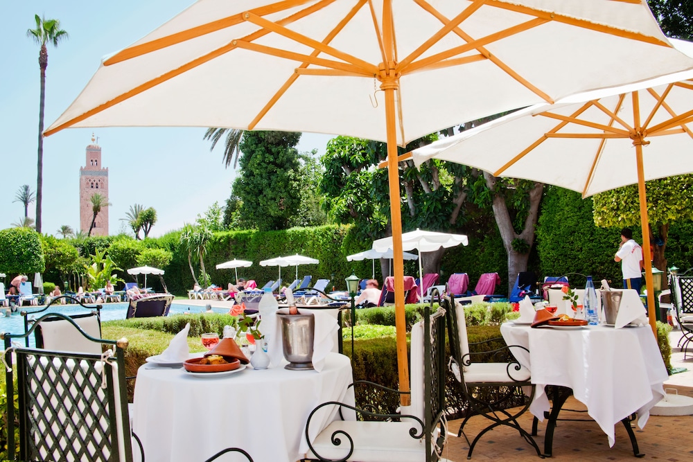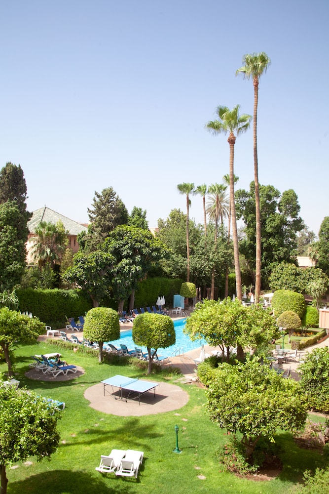 Facilities and services include a 24 hrs reception, restaurant, lounge bar, outdoor pool, elevator, wireless Internet in public areas, terrace and parking.The rooms are equipped with air conditioning, TV, telephone, safe box, and balcony/terrace.Address: Avenue Houmane El Fetouaki, 40000, Marrakech, Morocco.
