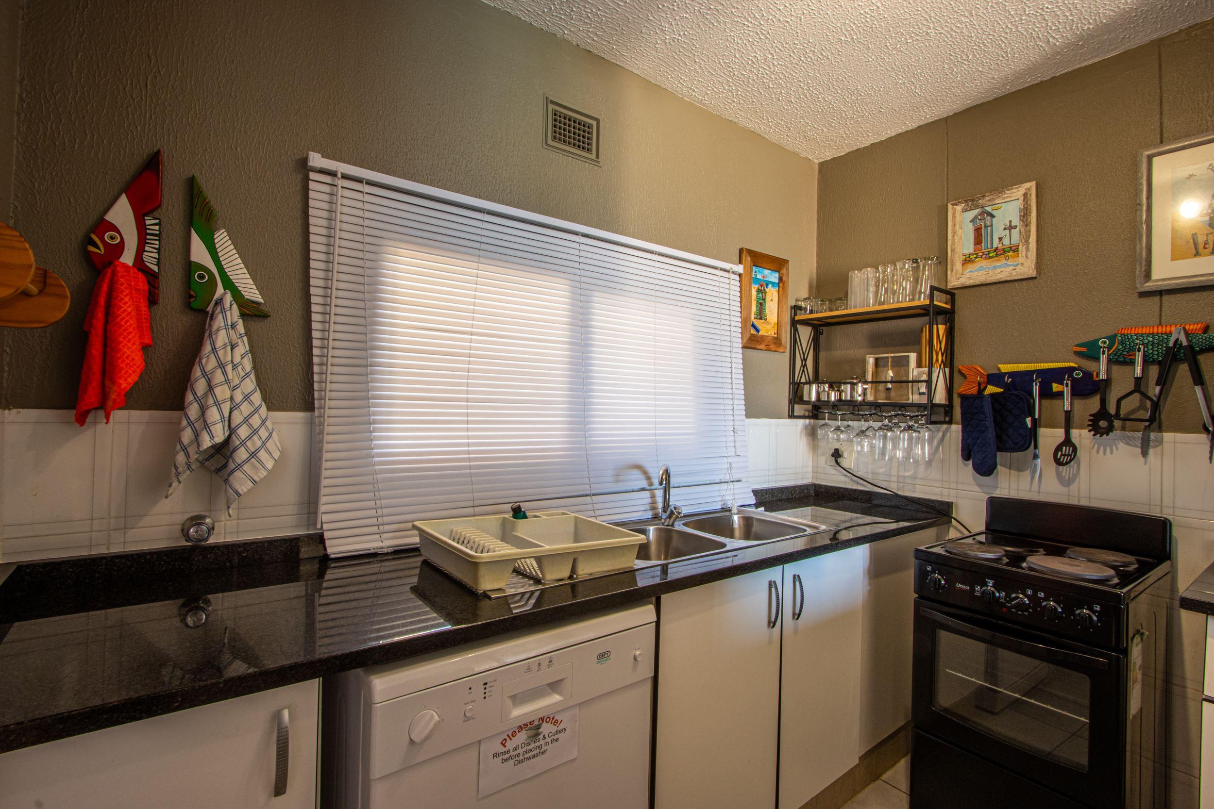 Chesapeake Bay 51 is a furnished self-catering apartment located in the secure Chesapeake Bay complex overlooking the beach in Margate, and close to various shops, restaurants, and amenities.The apartment can accommodate up to 6 guests, 2 adults and 4 children and comprises 2 bedrooms, 1 bathroom, and an open-plan kitchen, dining and living area. The first bedroom contains a double bed. The second bedroom contains 2 bunk beds. The bathroom contains a shower, a toilet, and a wash basin.The kitchen is well-equipped for self-catering with a stove and oven, fridge-freezer,