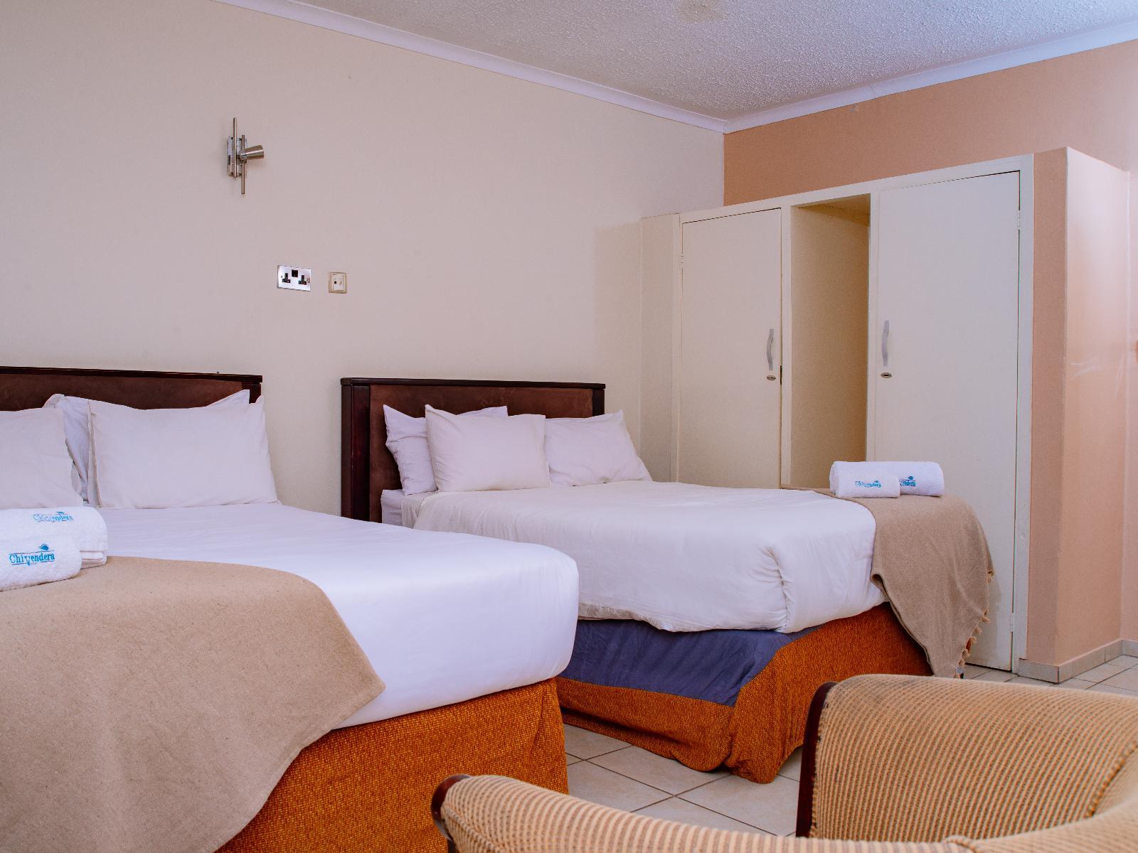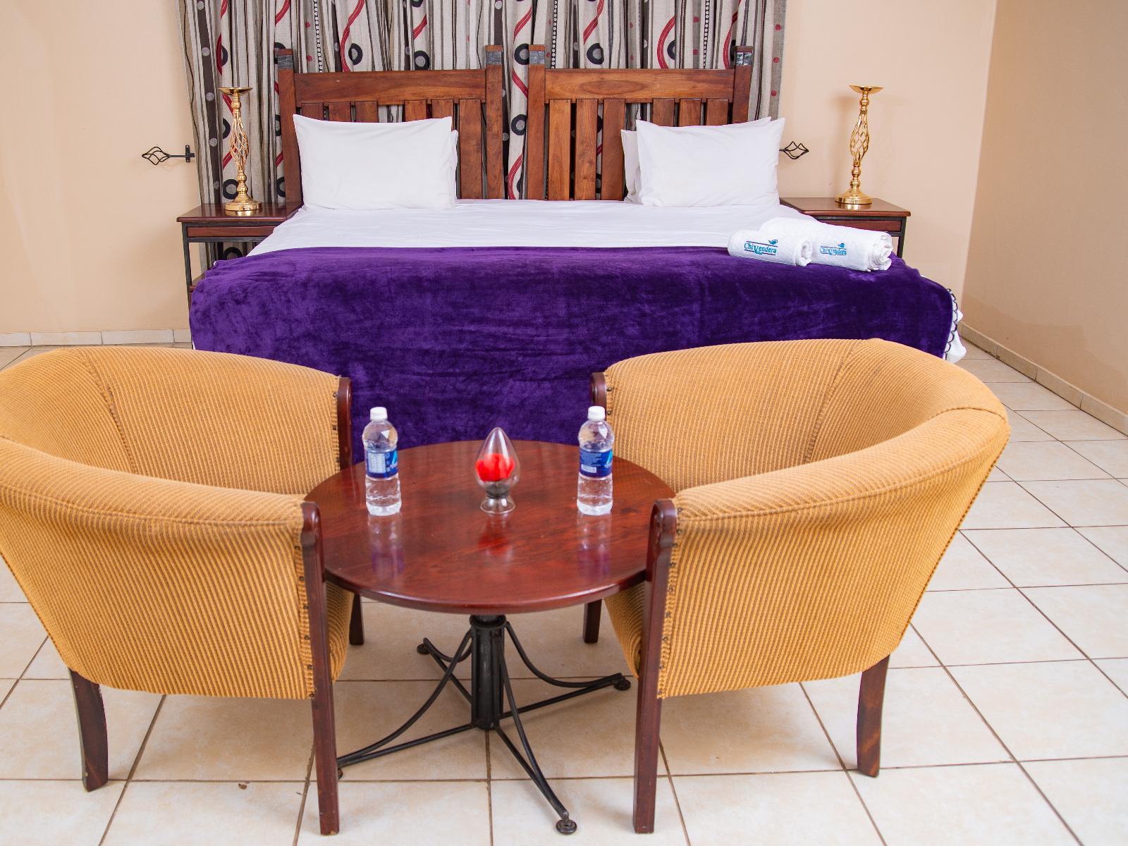 Accommodation is offered in Standard, Twin, Deluxe, Family, Executive and Royal rooms and suites. Each room has an en-suite bathroom with a shower, a TV with a selection of DStv channels, a fan, and a tea and coffee tray. Some rooms have a seating area and bar fridge. Wi-Fi internet access is available. Breakfast is the most important meal of the day and at Chivendera Villa we value the nutritive components of every meal prepared. We serve both warm and cold breakfast. Our dining features a menu that has various dishes to choose from. We offer western dishes and traditional meals.