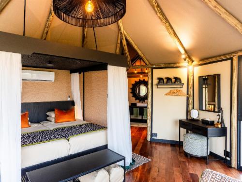 Chobe River Camp is a wildlife and birder’s dream and is the ideal place to break away, just across the river from the world renowned Chobe Nature Reserve, home to one of the largest concentrations of elephant on the African continent.The lodge offers 20 tented chalets constructed from a canvas/mopanie timber combination. Each unit affords magnificent views across spectacular Chobe River scenery from private decks. Every chalet is solar powered with en-suite bathrooms and shower/flush toilets and mosquito nets fitted over comfortable beds as standard. An additional bonus is the loc