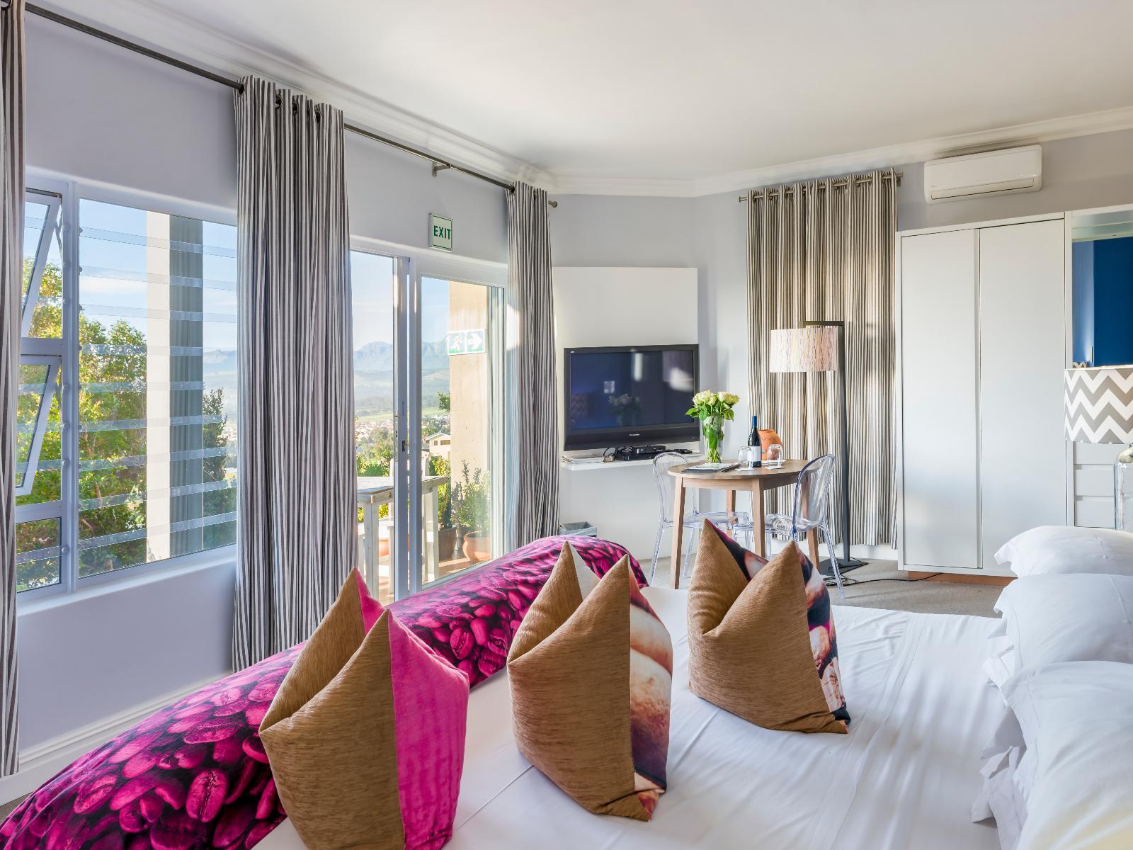 The Chocolate Box Boutique Guest House is in the picturesque town of Gordons Bay, with an unhindered view over False Bay and the surrounding mountains by day, affording extraordinary sunsets across the bay in the evenings, followed by the sprawling twinkling city lights at night. Beautiful rooms and suites are luxurious, with superior quality imported fabrics, linen and furniture. We provide high-quality bath and shower products as well as in-room tea and coffee, bar fridge, satellite television, electronic safes, and a hairdryer. Each room has excellent air-conditioning, with eith