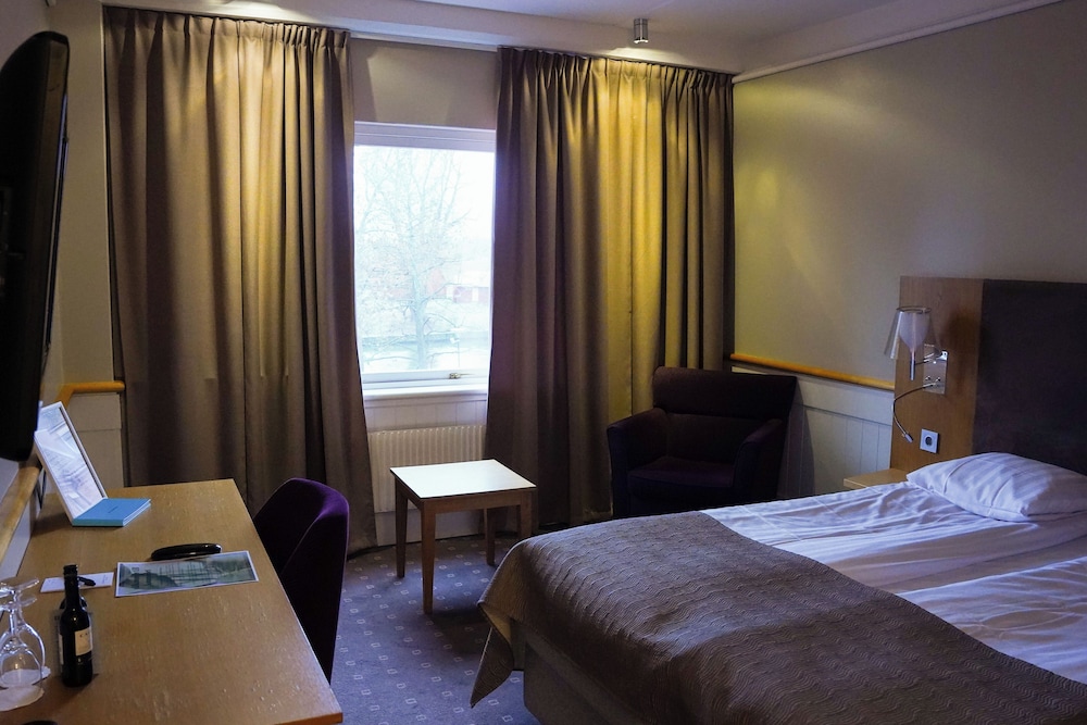 Located on the banks of the Nyköping River, this stylish hotel is a 15-minute drive from Stockholm-Skavsta Airport. The establishment is a 10-minute walk from central Nyköping. The Medieval ruins of Nyköping Castle are approximately 500 meters away. The hotel's rooms have colourful modern décor and an armchair or sofa, where guests can kick their heels up and relax in front of the TV with a refreshing drink from the minibar, which feature in every room. Free tea/coffee and fruit is available at all times for guests who want a light snack and there is also a light buffet served in the evening. Guests can relax on the hotel's deck or treat themselves to a SPA procedure. Those who wish to stay in shape can use a nearby gym for free.