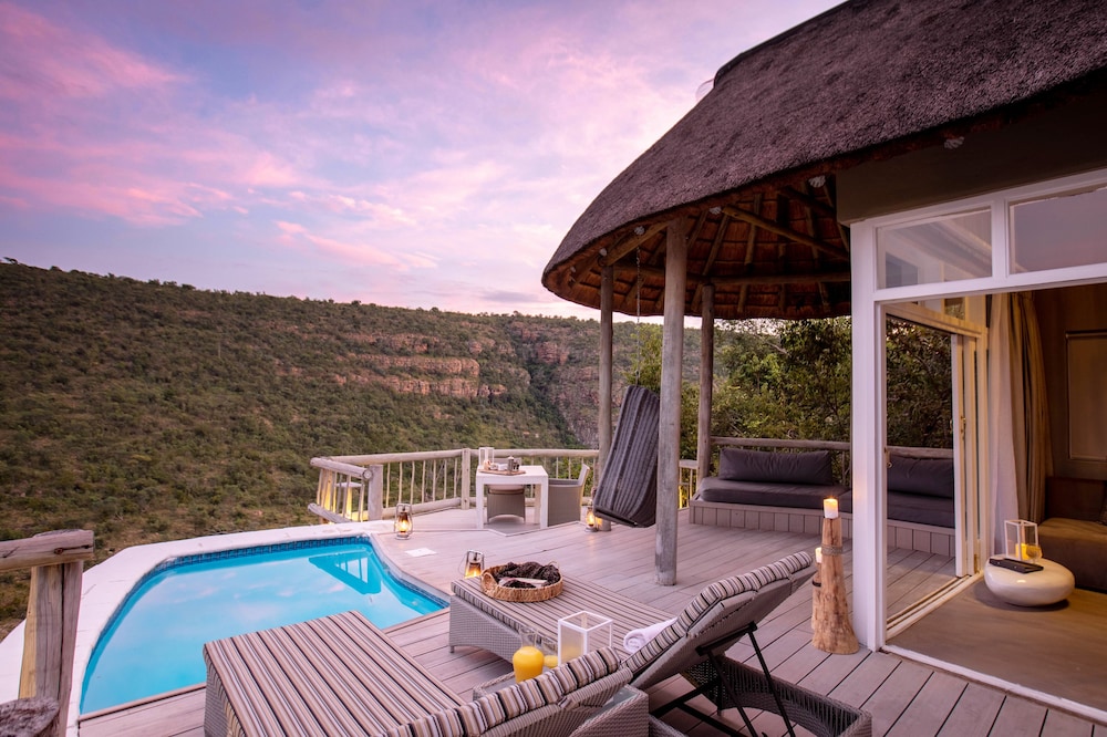 Clifftop Exclusive Safari Hideaway is not an average game lodge. Instead, it’s a place where safari style meets the best of the bushveld: superb game-viewing opportunities from a lodge that sets new design standards.As the name suggests, Clifftop benefits from an exceptional position: each of the luxury guest suites is perched on the edge of a dramatic cliff in the Waterberg Mountains. From the private plunge pool decks, guests can enjoy sweeping views across the pristine landscapes of the Welgevonden Private Game Reserve, and down into the Sterkstroom Valley. Welgevond