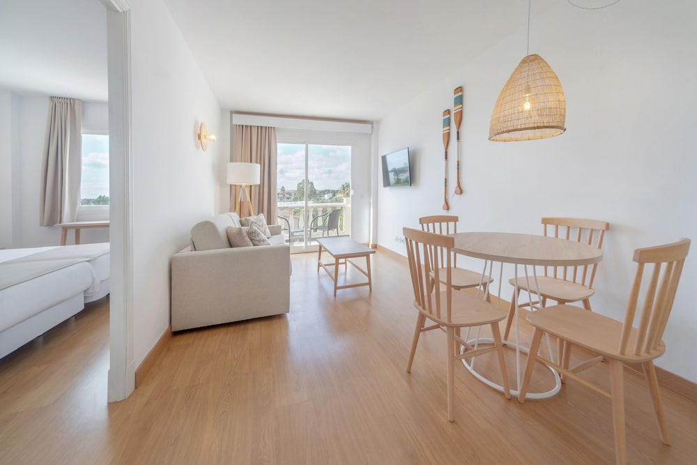 This pleasant complex lies in the northeast of the island just 400 m from the local sandy beach. A shopping centre, restaurants, bars and pubs as well as nightclubs are all to be found within walking distance and the train station lies directly opposite the hotel whilst the tourist centre Cala Millor, which feature an abundance of shopping and further entertainment venues is 300 m from the hotel. There is a park 500 m from the hotel and a forest approximately 1 km away, both of which are ideal for those wishing to undertake a relaxing stroll. The nearest big town is about 20 km from the hotel.This complex has a main building with elevator and three buildings, one of them located on the other side of the street with lift. Between the two a total of 137 apartments. The building is fully air-conditioned and offers a more relaxing stay. It has a lovely entrance hall with reception. In the grounds you will find a café, a games room, an air-conditioned restaurant with highchairs for children. You will have the possibility to connect to the Internet to browse the free network. The health care service complete all such cost benefits. It also has in mind the little ones, for which there is a kids club (for children aged 3-12) only during the summer.It consists of 137 apartments in four buildings, consisting of a lounge separate bedroom, bathroom with shower and / or bath. They are also equipped with direct dial telephone and satellite TV. Are also equipped with kitchenette, refrigerator, air conditioning and Heating, a hire safe, a separate bedroom and a balcony.
