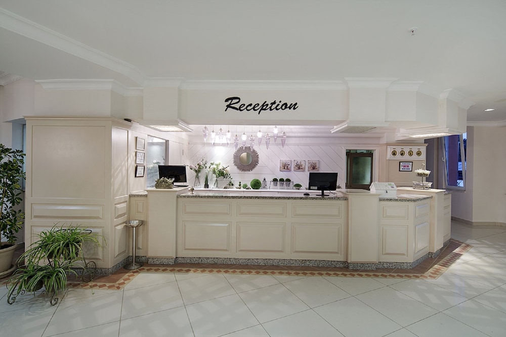 Situated directly on the sandy beach and overlooking the beautiful turquoise waters of the Mediterranean Sea, this modern hotel is surrounded by lush green gardens. A large variety of sports facilities, two outdoor pools, two children's pools, a fitness centre, a hammam, amphitheatre and nightclub are offered. The city of Alanya with its famous attractions is just a short drive away.