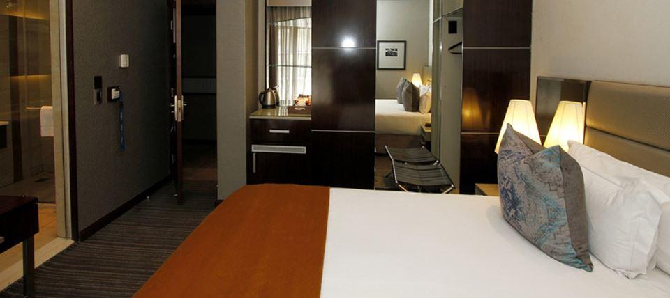 With beautiful views of Durban, distant views of the Indian Ocean and Durban Harbour this modern, 4 star hotel boasting 101 bedrooms is situated on the ridge of Musgrave’s popular Ridge road. Our Deluxe Rooms offer magnificent garden, partial city, sea and harbour views from their private balconies, while our Standard Rooms are situated at the back of the hotel with access to a communal verandah that offers inland views of the immediate surroundings. Our sophisticated bedrooms are equipped with twin or king sized beds, flat screen televisions, laptop safes and individually control
