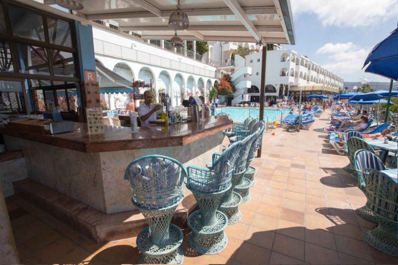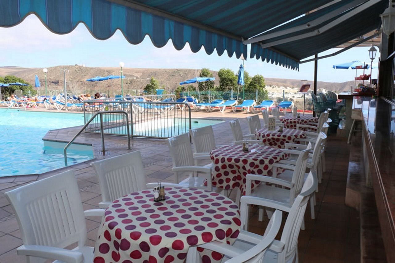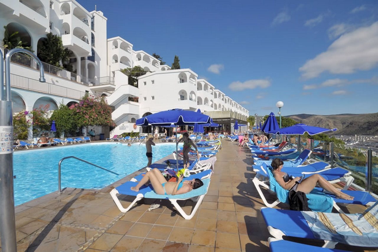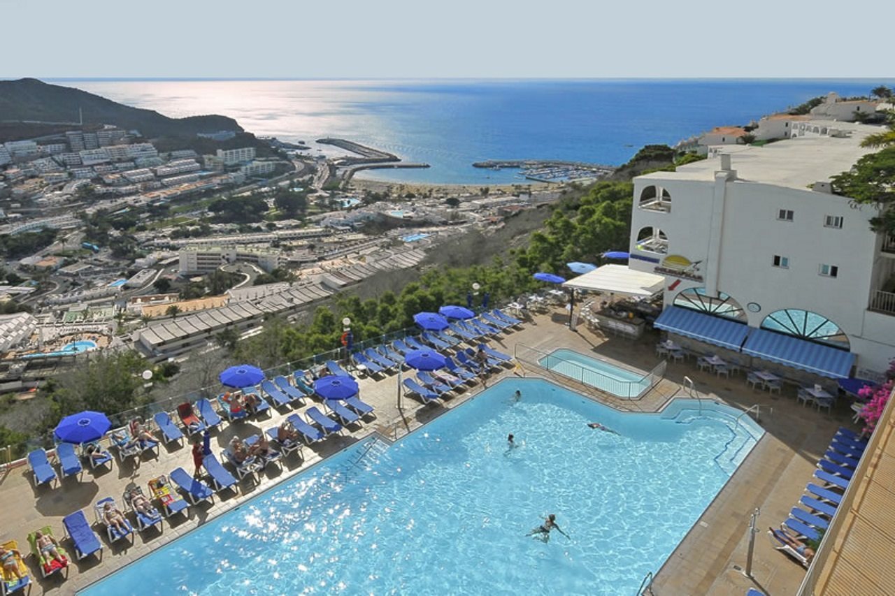 This attractive apartment complex is located in the tourist centre of Puerto Rico just 100 m away from links to the public transport network and plenty of restaurants, bars, pubs, nightclubs and shopping opportunities (200 m away). The wonderful beach is only around 1.5 km away.Renovated in 2005, this apartment complex includes 5 floors and 184 apartments. Guests are welcomed in the inviting reception, which is open around the clock, and also includes a safe, a lift and a currency exchange desk. The complex additionally includes a kiosk, a supermarket, a public Internet terminal and WLAN access point. Culinary delights are offered in the café, cosy bar and elegant restaurant. Younger guests are offered a kids' club, where they can play and make handicrafts. A laundry service is also offered as well as a car park for those arriving by car.The tastefully designed apartments include a combined lounge/ bedroom, a separate bedroom, a kitchenette with a fridge and an en suite bathroom. Further facilities include satellite/ cable TV as well as a hire safe. Each apartment also includes a balcony or a terrace.There is a saltwater pool in the well-tended grounds, a separate children's pool, a sun terrace with sun loungers and parasols as well as a poolside snack bar. An indoor pool is also available as well as a regular entertainment programme for guests of all ages. Sports options include a golf course, which is around 3 km away.