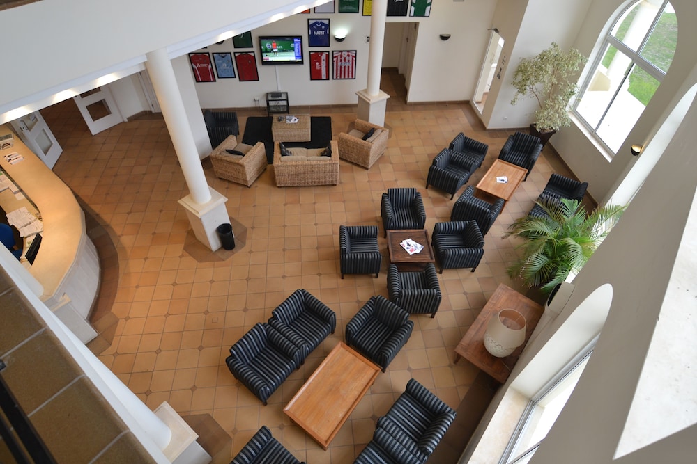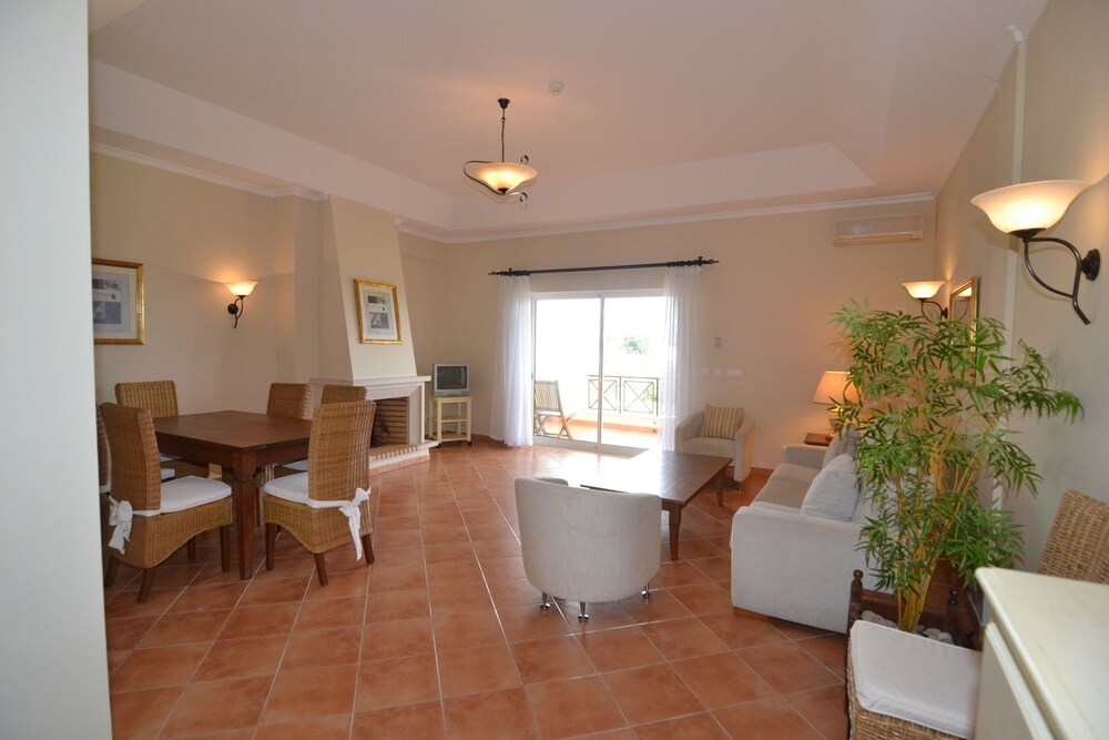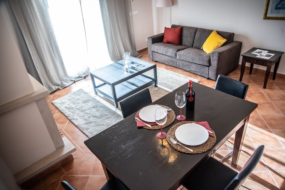 This attractive apartment complex lies in the Sotavento district of Maragota, east of Faro. It is located directly next to a peaceful 9-hole golf course. Fuzeta beach and the small fishing village with shops is around 3 km away. Public transport departs from a stop approximately 2 km from the hotel. Faro airport is approximately 30 km away.The complex has a total of 56 apartments. Guests are offered a spacious lobby with lifts, safes, Internet access and a 24-hour reception. Additional amenities include a cosy bar, a terrace with a view of the sea and an air-conditioned à la carte restaurant with Portuguese cuisine. In addition, room and laundry services are at guests' disposal and there is a doctor on call. There are parking facilities available outside of the complex.The elegantly furnished apartments include a bathroom, a living room with a sitting area, a dining area, a bedroom as well as a fully equipped kitchen area. They additionally come equipped with a direct dial telephone, satellite/ cable TV, Internet access, a hire safe and central heating as standard.A swimming pool surrounded by sun loungers and parasols is located in the hotel grounds. The hotel has a Jacuzzi, a sauna, a steam baths, a professional massage service, tennis, billiards/ snooker facilities and golf.Guests are invited to serve themselves from the breakfast buffet. At lunchtime or dinner guests may select dishes from an à la carte and there is also a set menu available to choose from. In addition, the hotel caters for guests with special dietary requirements.