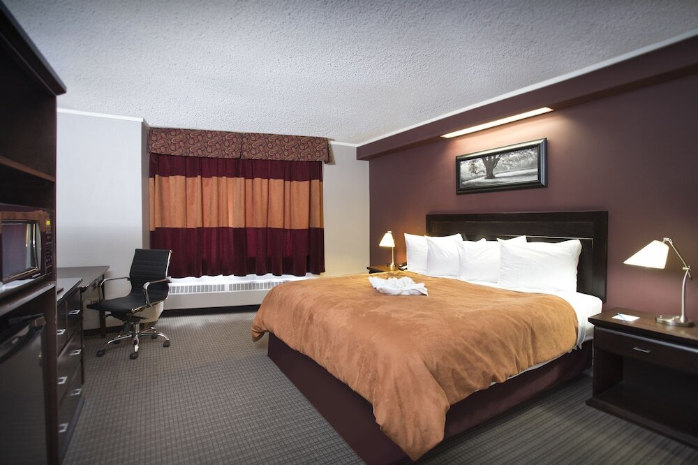 With a stay at Coliseum Inn, you'll be centrally located in Edmonton, steps from Rexall Place and minutes from Edmonton Expo Centre. This hotel is within close proximity of Commonwealth Stadium and Royal Alexandra Hospital.Rooms Make yourself at home in one of the 98 air-conditioned rooms featuring refrigerators and microwaves. Flat-screen televisions with cable programming provide entertainment, while complimentary wireless Internet access keeps you connected. Private bathrooms have deep soaking bathtubs and complimentary toiletries. Conveniences include desks and coffee/tea makers, as well as phones with free local calls. Take advantage of recreation opportunities such as a nightclub, or other amenities including complimentary wireless Internet access and tour/ticket assistance.Dining Enjoy a satisfying meal at a restaurant serving guests of Coliseum Inn. Quench your thirst with your favorite drink at a bar/lounge.Business, Other Amenities Featured amenities include a business center, a 24-hour front desk, and luggage storage. Free self parking is available onsite.