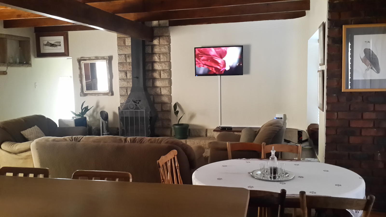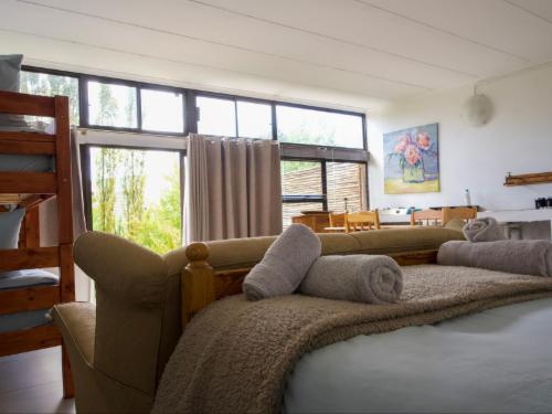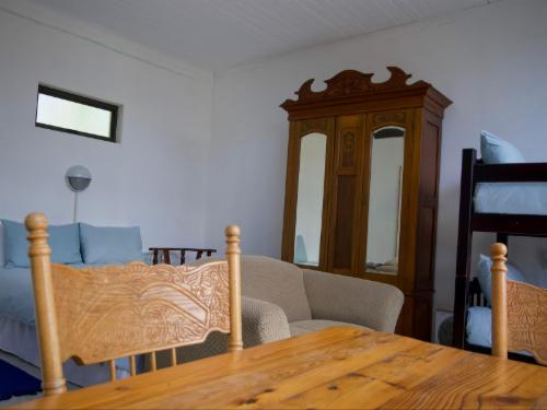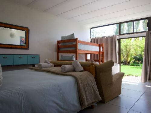 Collett House is the main residence and can comfortably sleep six adults. It has a large living room with a fireplace and a fully equipped kitchen. The patio and entertainment area have braai facilities.