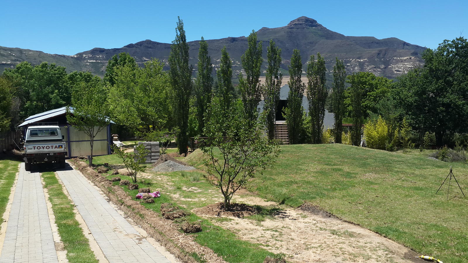 The property has a large lawn where the kids can play.