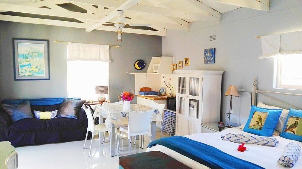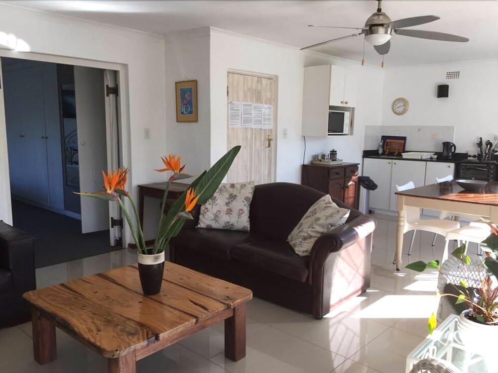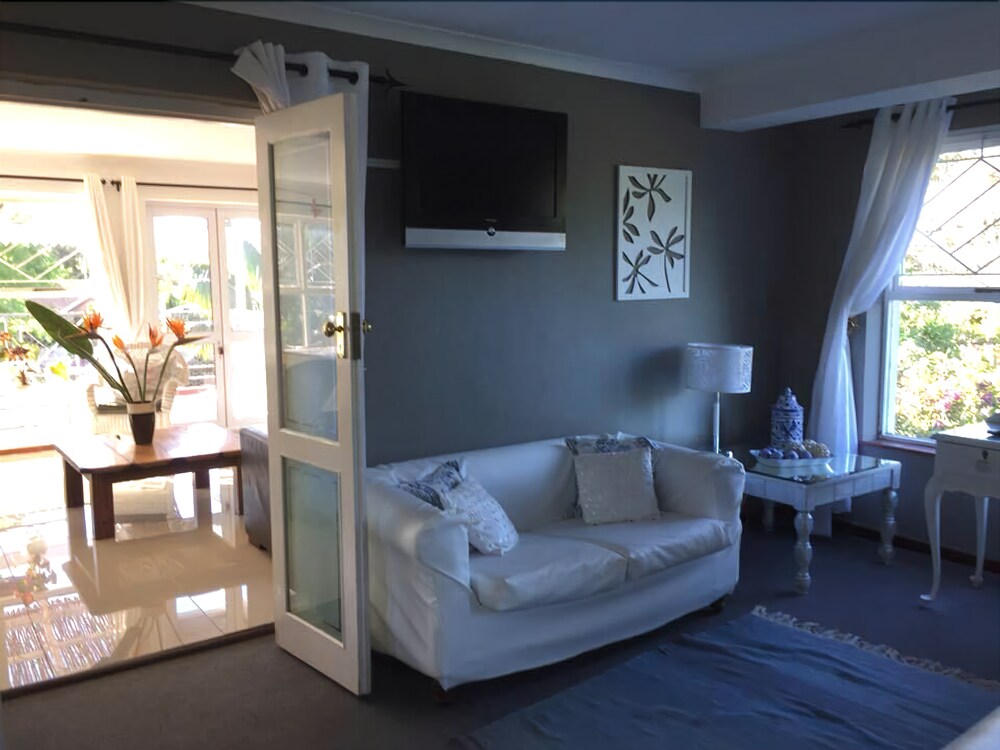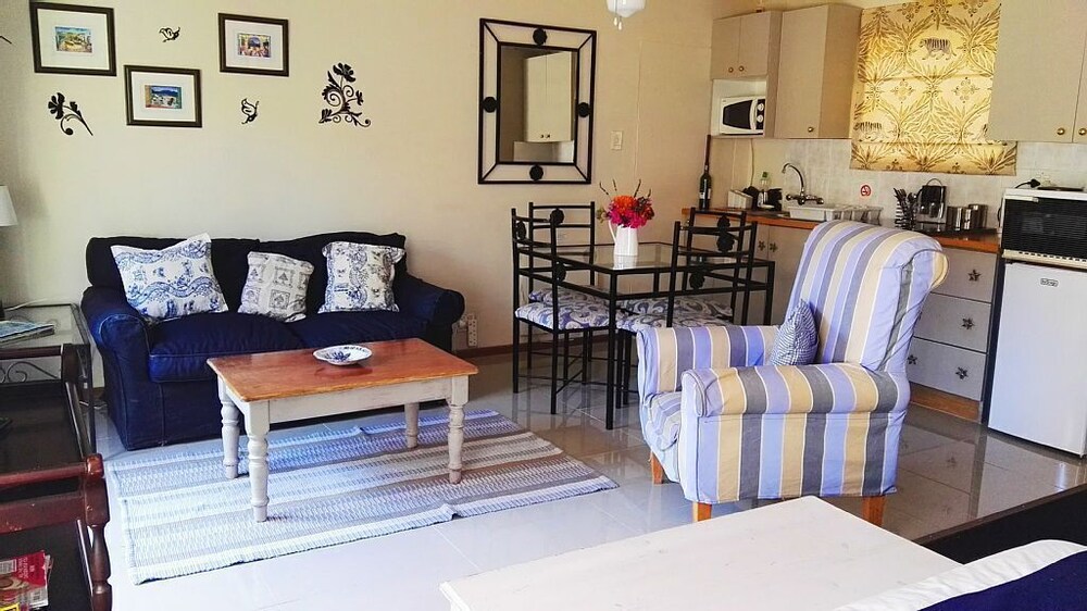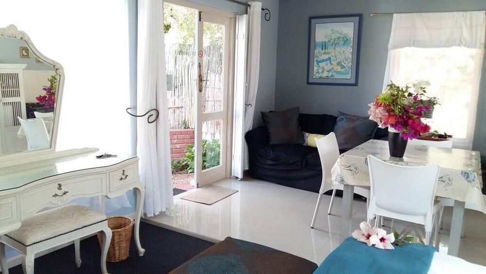 Constantia Lazy River comprises of four different units. Two studio's for singles or doubles, one two bedroom cottage with a third bedroom option and a family apartment.The units have stylishly decorated, spacious and are comfortable for longer stays. Each have their own private entrances and parking within the facility. The main garden has swings and a slide for children and the salt water pool is enclosed .We try to make our guests feel at home with a relaxed type of atmosphere. We are close to many family and fine restaurants, wonderful wine farms, supermarkets, walking trails