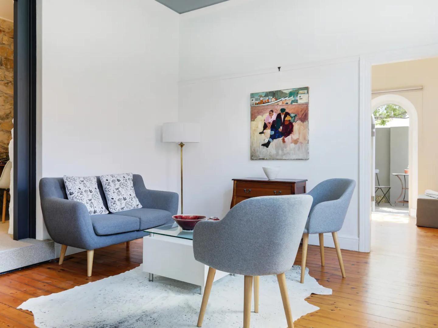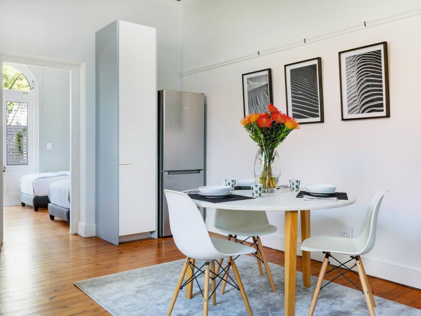 This unique contemporary cottage is semi- attached to the main house. Newly renovated it has two bedrooms leading out onto a front and back patio. The main room has a Queen bed and the second room can be Twin or King beds. The en-suite bathroom offers a stunning shower. The sitting room has a wood fireplace and gas heater. The open-plan dining room is in the kitchenette, please note no no oven. Private entrance and alarm with parking on street parking.Kalk Bay is hip, unpretentious, a little bit bohemian, and easy-going. It is a perfect holiday destination or a weekend getaway, ne