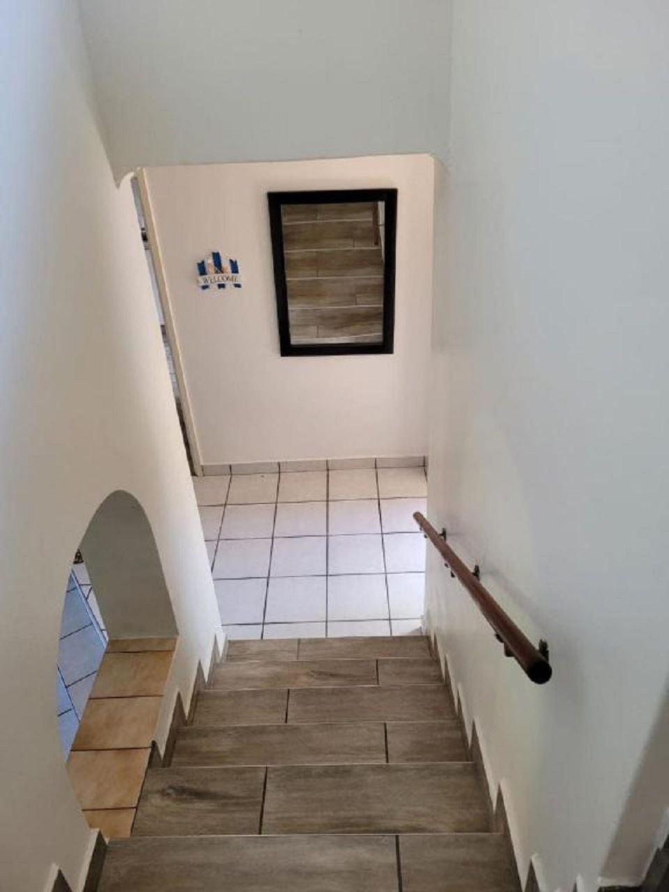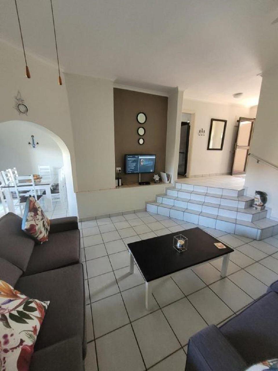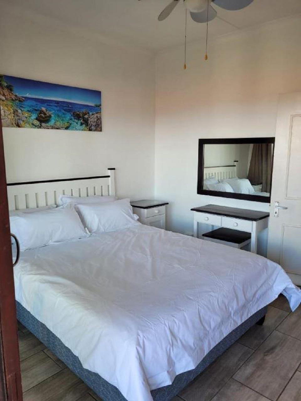 Corona Del Mar 9 is a self-catering duplex in the secure Corona Del Mar complex in Uvongo. The complex is just 350 m from Uvongo beach, and the location offers easy access to shops and restaurants.The duplex can accommodate up to 8 guests and comprises 3 bedrooms, 2 bathrooms and a guest toilet, and an open-plan kitchen, dining and living area.The bedrooms are located upstairs. The first bedroom contains a double bed and a shower en suite with a toilet and washbasin. This room opens to a balcony with sea views. The first and second bedroom contains a queen size beds, an