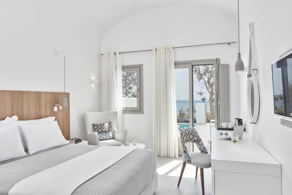 This property is 1 minute walk from the beach. Perfectly located right on the cosmopolitan black sandy beach of Kamari, offers luxury accommodation with a private beach area.The property offers sun beds and umbrellas a few steps from This beachfront luxury hotel is located in Santorini (Kamari), close to Open Air Cinema Kamari, Wine Museum, and Estate Argyros Santorini. Along with a full-service spa, this hotel has a private beach and a restaurant. Free buffet breakfast and free WiFi in public areas are also provided. Other amenities include an outdoor pool, a fitness center, and a poolside bar.All 116 rooms provide conveniences like refrigerators and electric kettles, plus free WiFi and TVs with satellite channels. Guests will also find balconies or patios, minibars, and room service
