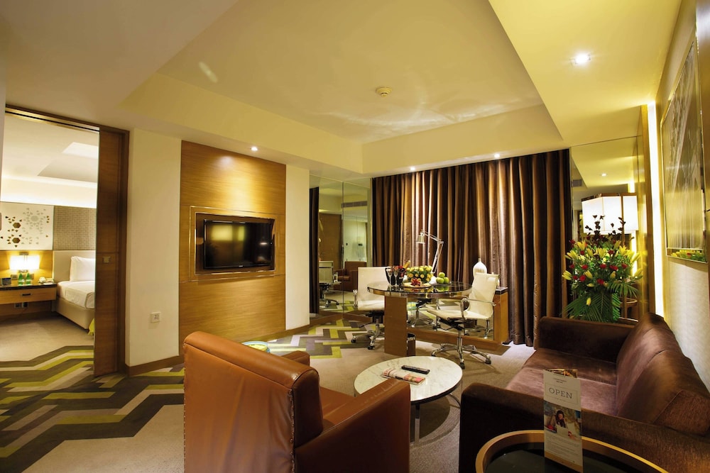 This luxurious Hotel can be found in Agra. The accommodation comprises 189 cosy rooms. The reception desk is open all day long. Cots are not available at Courtyard Agra. No pets are allowed on the premises. There is a car park at Courtyard Agra. Travellers may avail for airport transfer service. This establishment takes pride in offering a choice of dining facilities, which serve delicious culinary specialities. Courtyard Agra is provided with all the necessary services and amenities for a successful business event. The Hotel may charge a fee for some services.