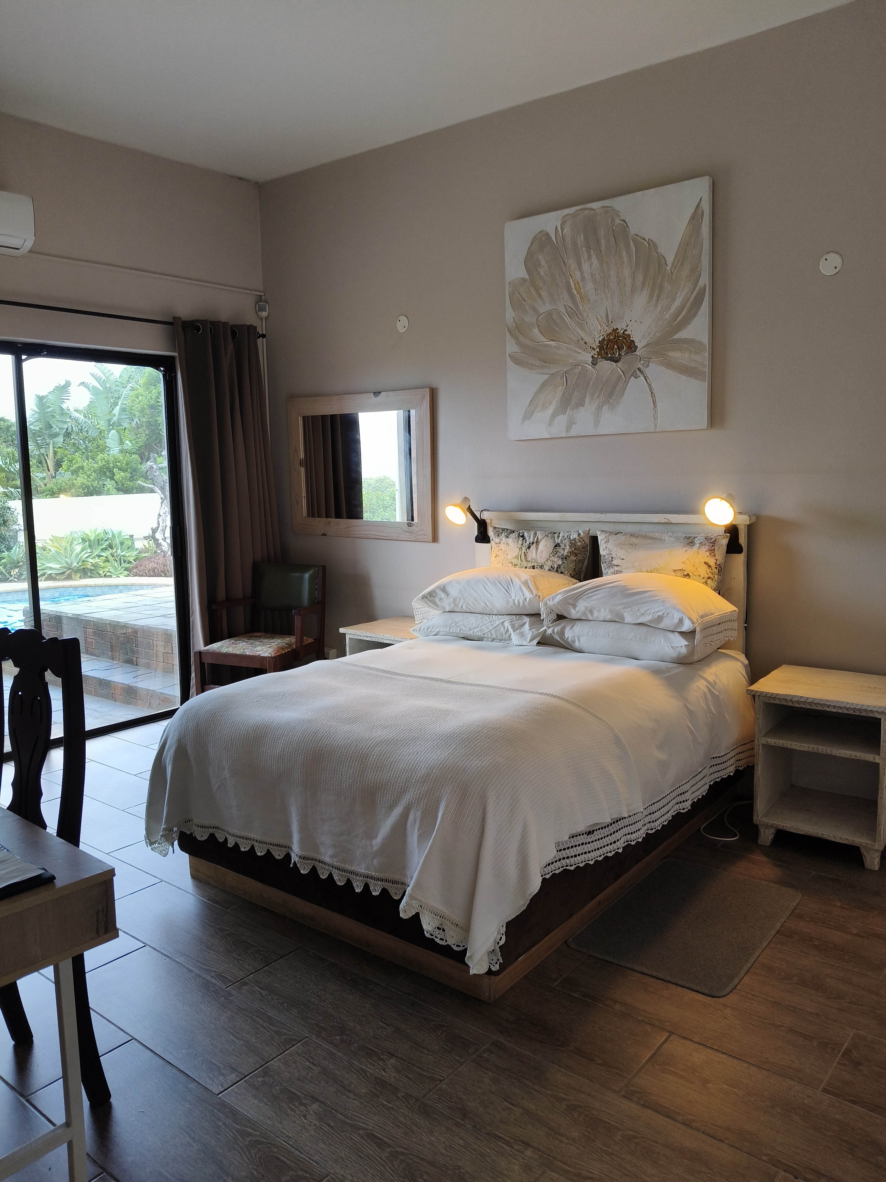 Cove View B&B offers accommodation in East London. Enjoy the amazing view of the Cove Rock. Take some time to go for walk or swim at the beach after a hard day of work.200 meters for the beach6 km from the airport8 km from the IDZ10 km from Mercedez Benz plant15 km from the city24-hour security SolarWi-FiSwimming pool9 hole meshie golfTennis courtThere is a spectacular Honeymoon/Executive suite with its own sea view from the bedroom, bath and shower area. The entire view from this level offers a truly mag