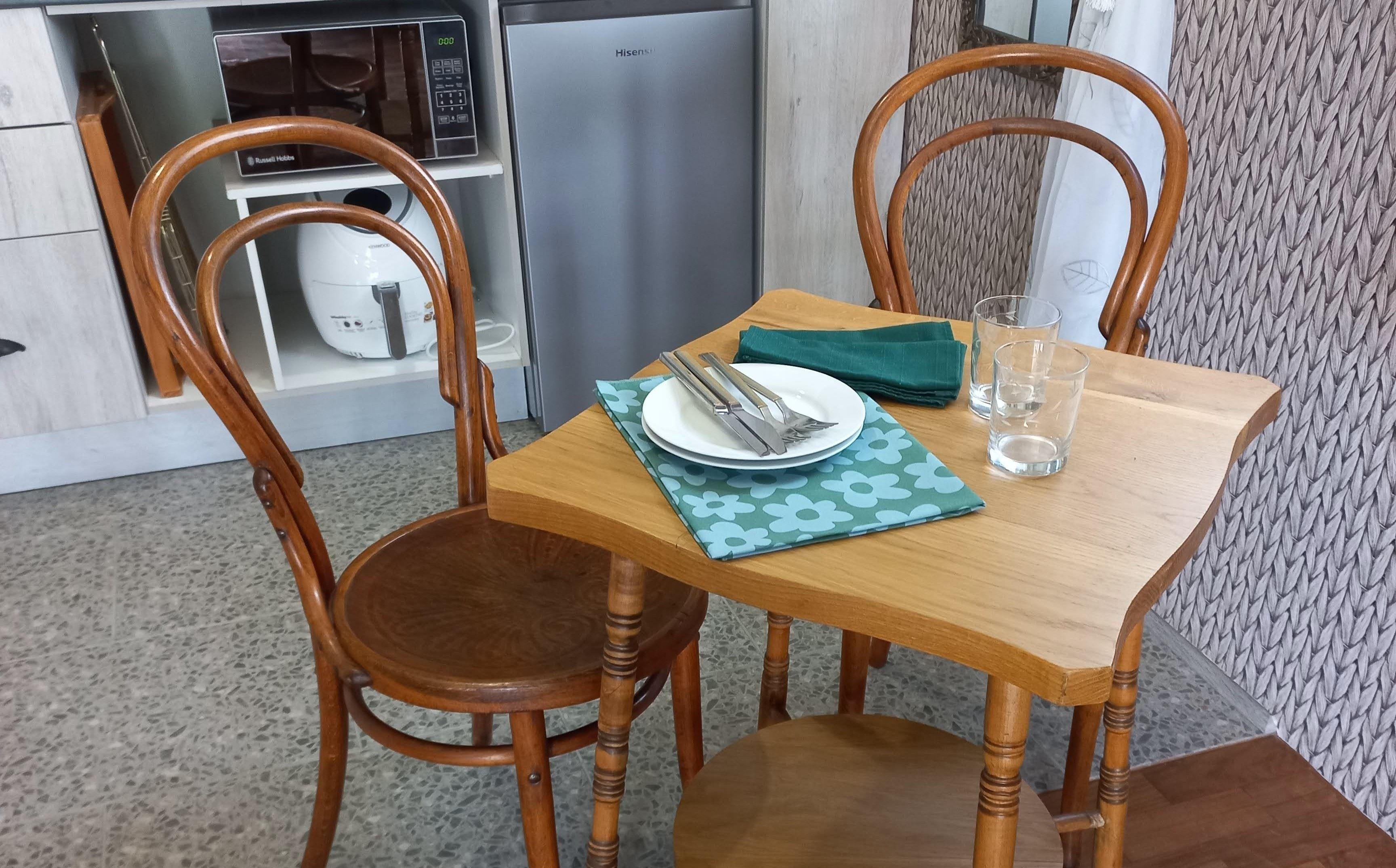 The well equipped kitchen has a two plate gas hob, microwave, cordless kettle , fridge and airfryer.
