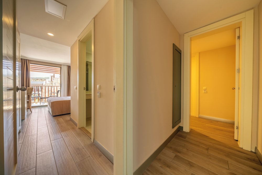 Crystal Hotel Green Bay Resort & Spa offer you so many opportunities that you will have a wonderful holiday.With its different architecture and the extraordinary beauty of the environment, the hotel is indeed a paradise for families with children – offering a private fine sandy beach of 250 m length as well as a variety of pools and aquapark with 2 slides covering 825 m².An area of 60.000 m², whereby 3.850 m² consists of hotel buildings – 450 m² annex building and 55.700 m² consists of gardens.