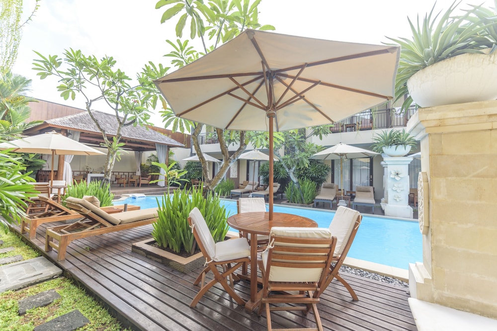 d'Penjor Seminyak is a 5-minute drive from the centre of Seminyak. Combining modern comfort with Balinese interiors it boasts an outdoor pool and air-conditioned rooms with a private balcony or terrace. Free Wi-Fi is available in all areas.Enjoying garden views elegant rooms are decorated in brown tones. Each has a flat-screen satellite TV DVD player and a private bathroom. Other in-room comforts include a minibar electric kettle and tea/coffee-making facilities. A sofa is provided in the seating area.A 10-minute drive from Seminyak area where many fine dining and nightlife options are located d'Penjor Seminyak is 20 minutes' drive away from the vibrant Kuta area. It takes 30 minutes to drive to Ngurah Rai International Aiport from the hotel which offers airport pick-up services at a charge.Guests can enjoy relaxing massages lounge on the sun beds by the pool or pamper themselves at the spa. Staff at the 24-hour front desk can assist guests with luggage storage. Other services include laundry dry cleaning and vehicle rental services. Free parking spaces are available on site.Offering room service d'Penjor Cafe & Restaurant serves a variety of Indonesian Chinese and international cuisines. Guests can have breakfast in the comfort of their rooms.