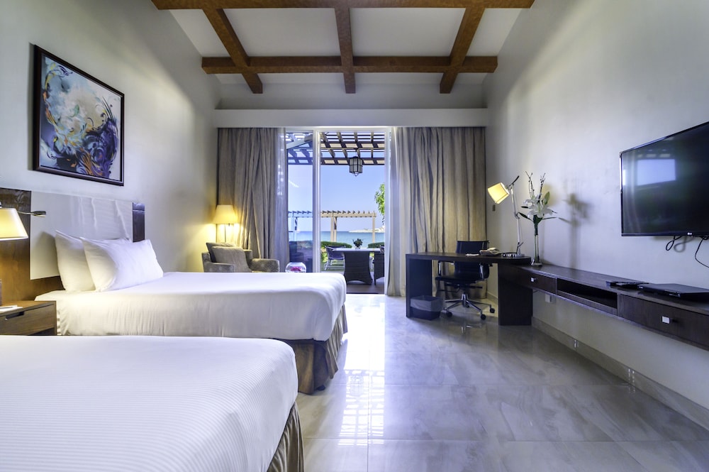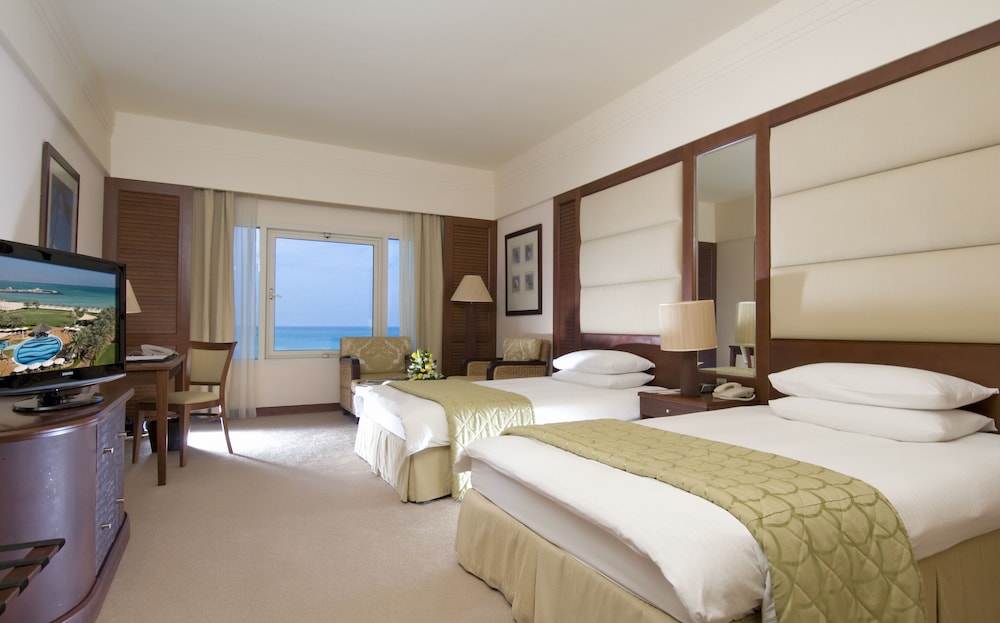 This 5-star resort boasts 800 m of private white sand beaches. It has a spacious outdoor pool with a swim-up bar, and offers elegant accommodations with views of the Arabian Gulf.