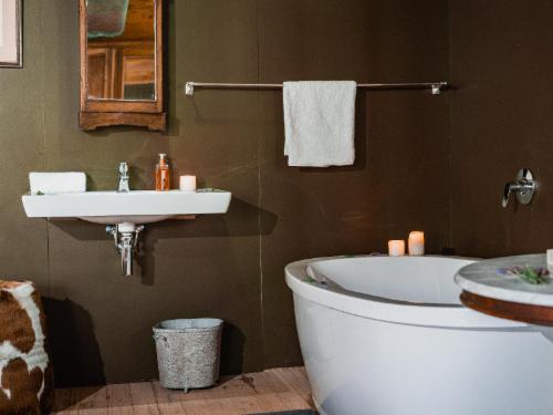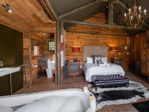 Step into a world of serenity as you retreat to one of our six secluded en suite bedrooms. Nestled 100m away from the main entertainment area, these charming abodes offer ultimate privacy, boasting private entrances and balconies that overlook the mesmerizing forest. Guests are welcome to explore the entirety of our property, indulging in leisurely strolls, invigorating runs, and exhilarating cycling adventures along our picturesque gravel roads that wind through the farm, free from the confines of the game camps.