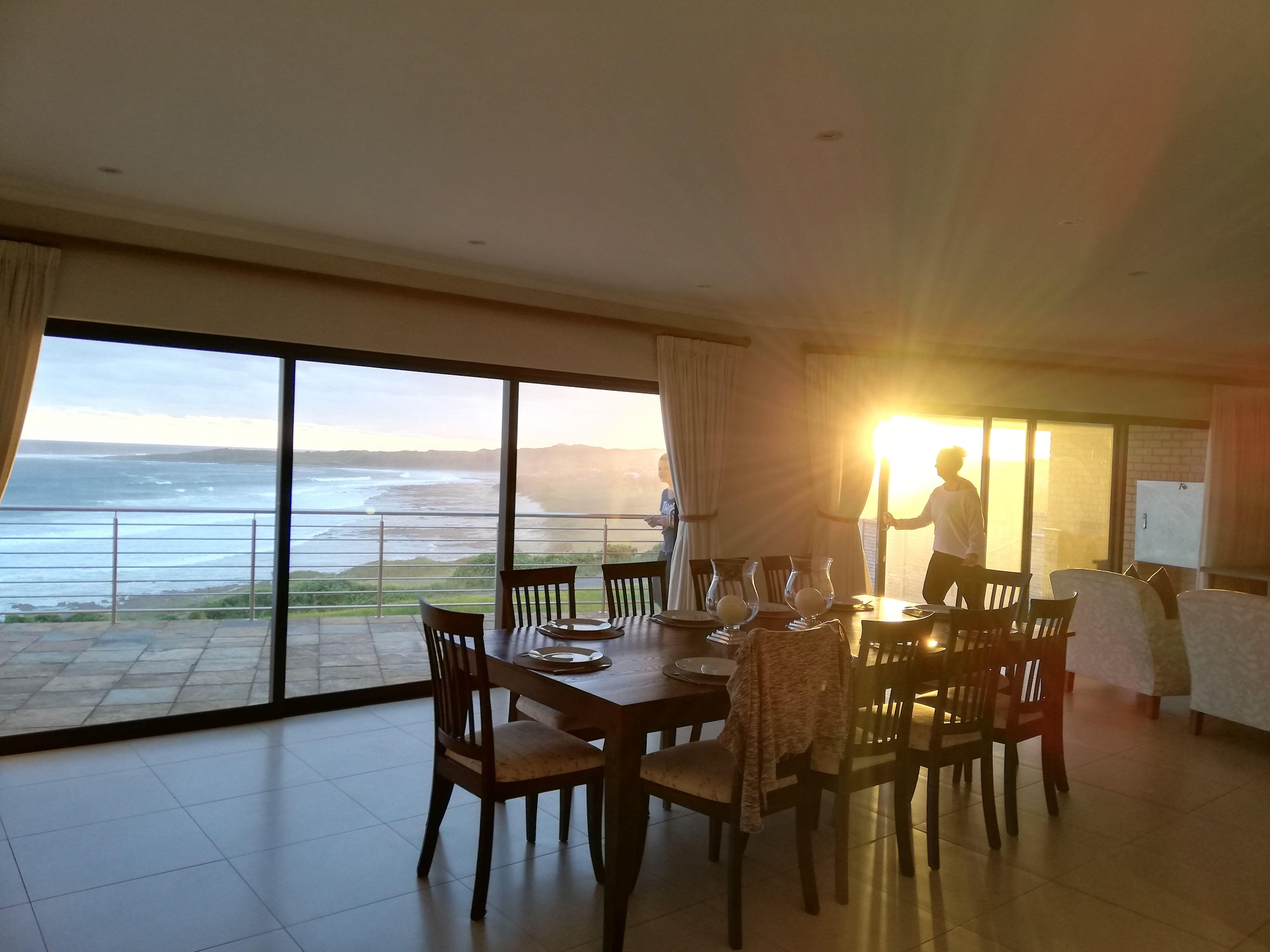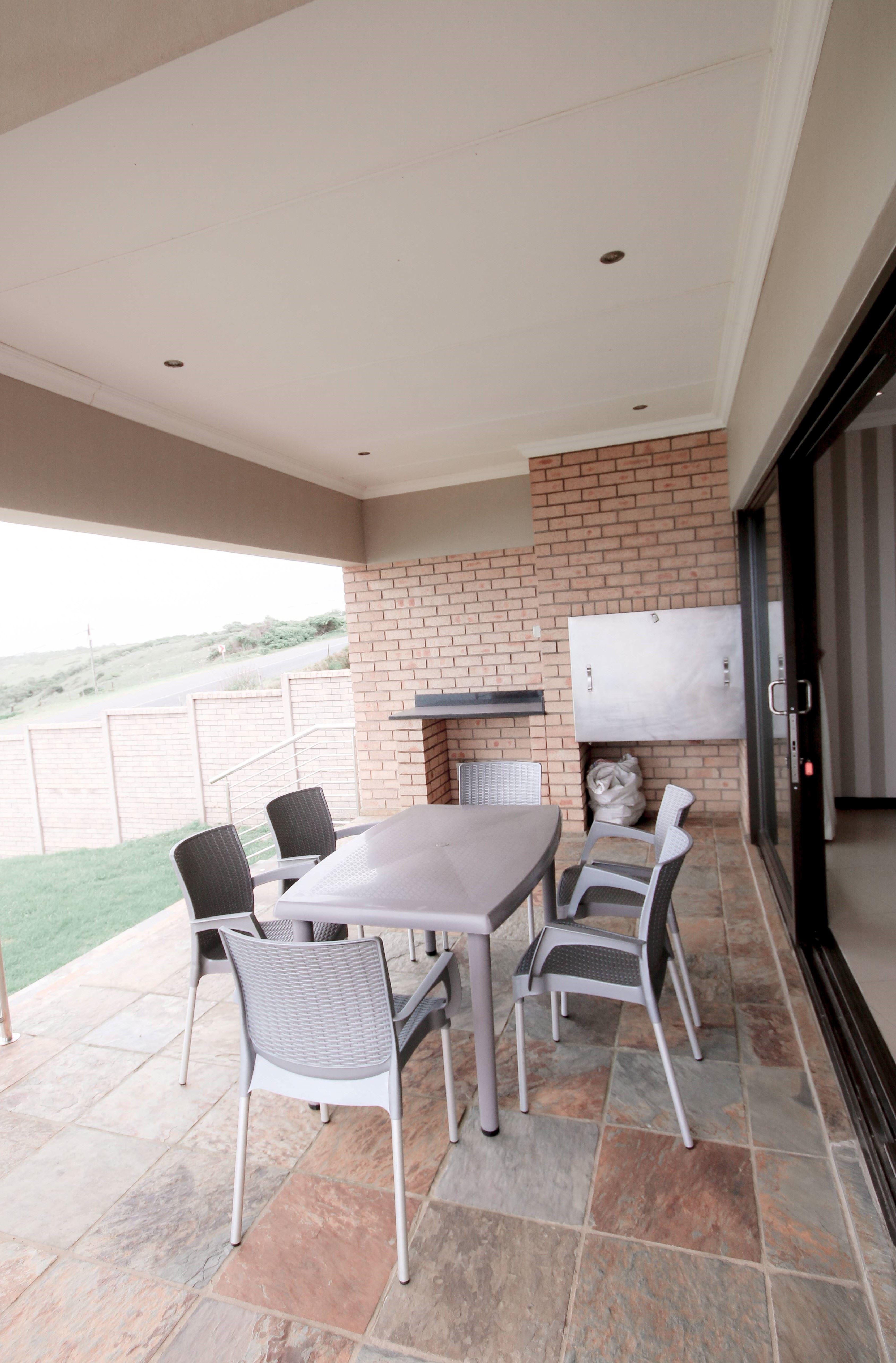 This spectacular upmarket modern beach home with an uninterrupted panoramic sea view is situated at Glengariff on The East Coast Resorts just 15 minutes from East London.The house has all the comforts and amenities you would want for a relaxing holiday, including full DSTV & Wi-Fi. A large open plan T.V. lounge, dining room, kitchen & another lounge leading onto the front deck and braai area with magnificent panoramic sea views.A main bedroom en-suite with dressing room and king-size bed. A Guest room with a double bed & two guest rooms with two single beds each (one