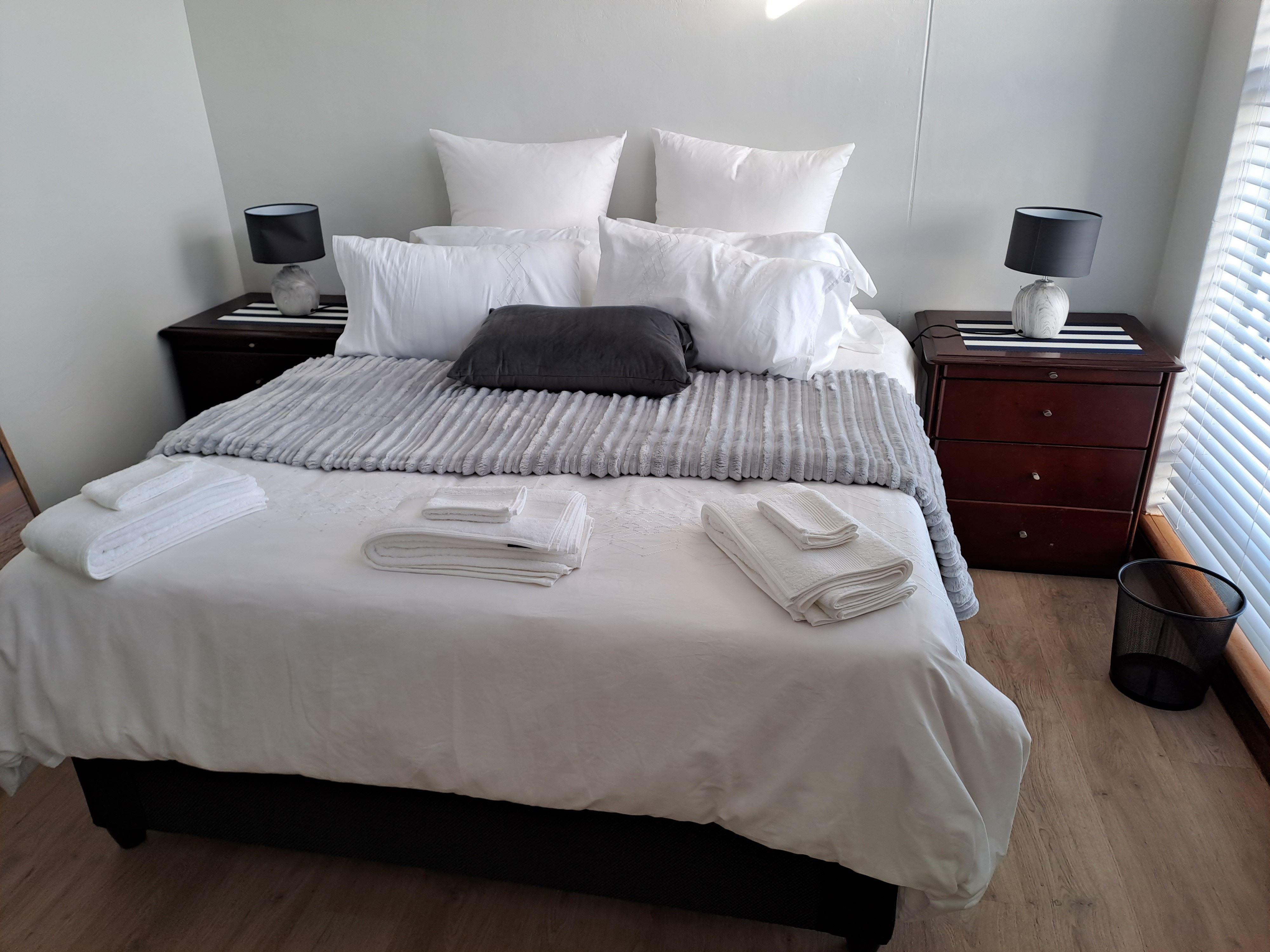 Des & Domonic is a self-catering holiday apartment situated in a secure complex in the heart of Strand. It boasts a panoramic view of the ocean and is situated just across the road from the beach, making it an ideal option for a coastal getaway. This apartment can accommodate four guests at a time and comprises of two bedrooms and a bathroom. Both bedrooms are furnished with a queen size bed and the bathroom is fitted with a shower, basin and toilet. All linen and bath towels are provided, however guest are required to bring their own beach towels. The living area featu