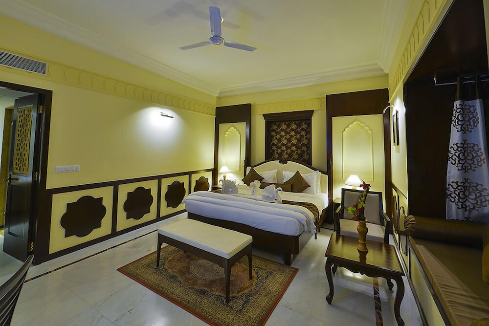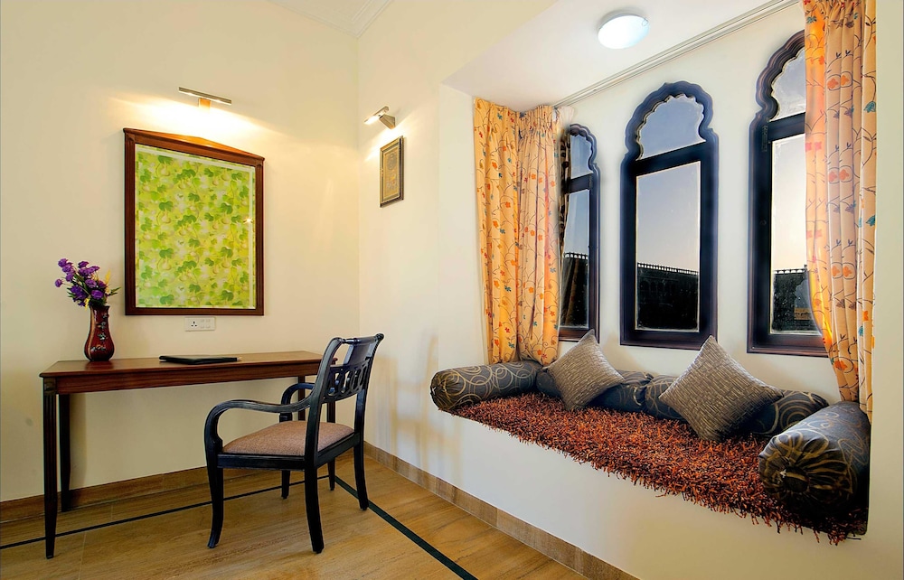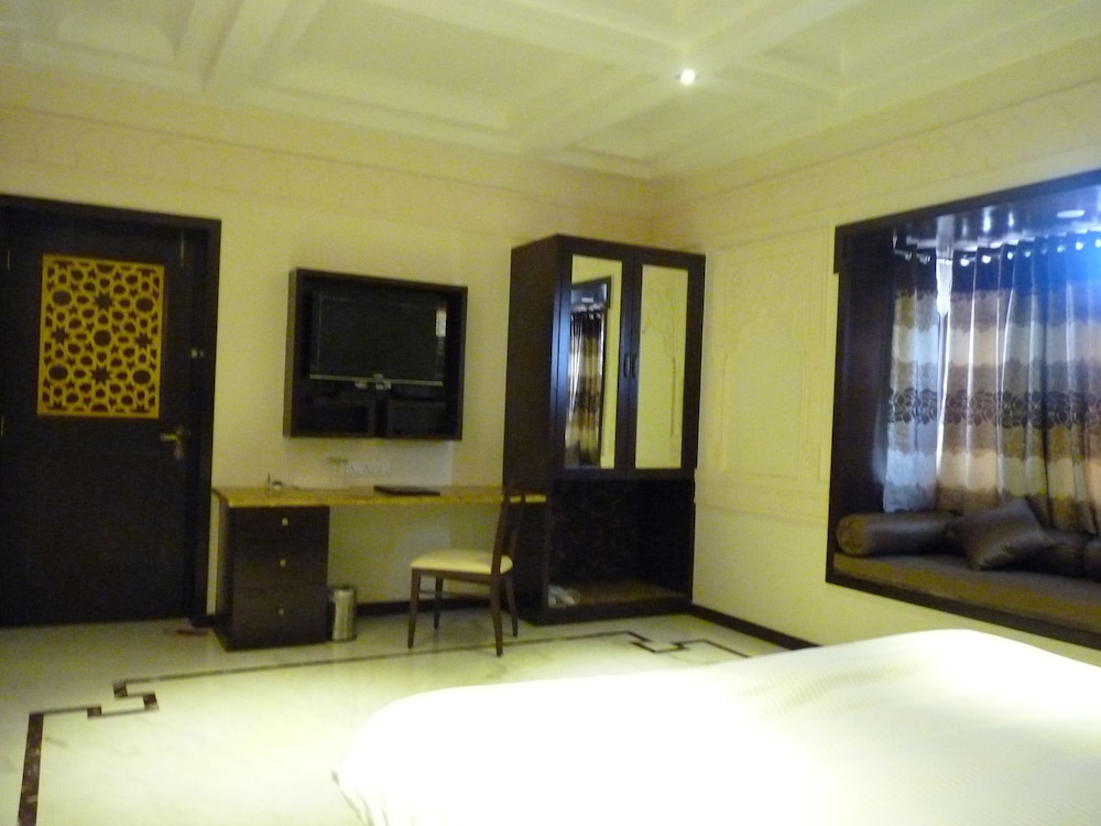 Property Location With a stay at Desert Tulip Hotel & Resort in Jaisalmer, you'll be close to Gadi Sagar Tank and Patwon-ki-Haveli. This 4-star resort is within close proximity of Jaisalmer Fort and Bhatia Market.Rooms Make yourself at home in one of the 64 air-conditioned rooms featuring refrigerators and LCD televisions. Satellite television is provided for your entertainment. Private bathrooms with shower/tub combinations feature complimentary toiletries and slippers. Conveniences include phones, as well as safes and desks.Rec, Spa, Premium Amenities Enjoy recreational amenities such as a health club and an outdoor pool. Additional features include wireless Internet access surcharge, an arcade/game room, and wedding services.Dining Enjoy a satisfying meal at a restaurant serving guests of Desert Tulip Hotel & Resort. Relax with a refreshing drink at a poolside bar, a swim-up bar, or one of 3 bars/lounges. A complimentary breakfast is included.Business, Other Amenities Featured amenities include a business center, limo/town car service, and a computer station. Guests may use a roundtrip airport shuttle for a surcharge, and free self parking is available onsite.