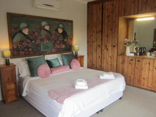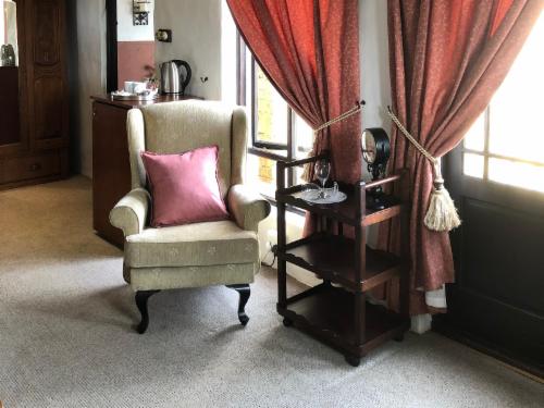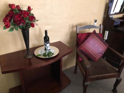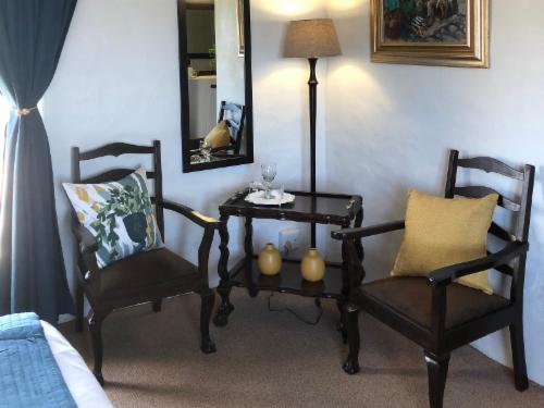 We offer lounge with fireplace, open bath and shower with separate toilet in our Honeymoon Suite. Beautiful views from all our rooms and small balcony with sundowners and early morning coffee. Complementary cherry.