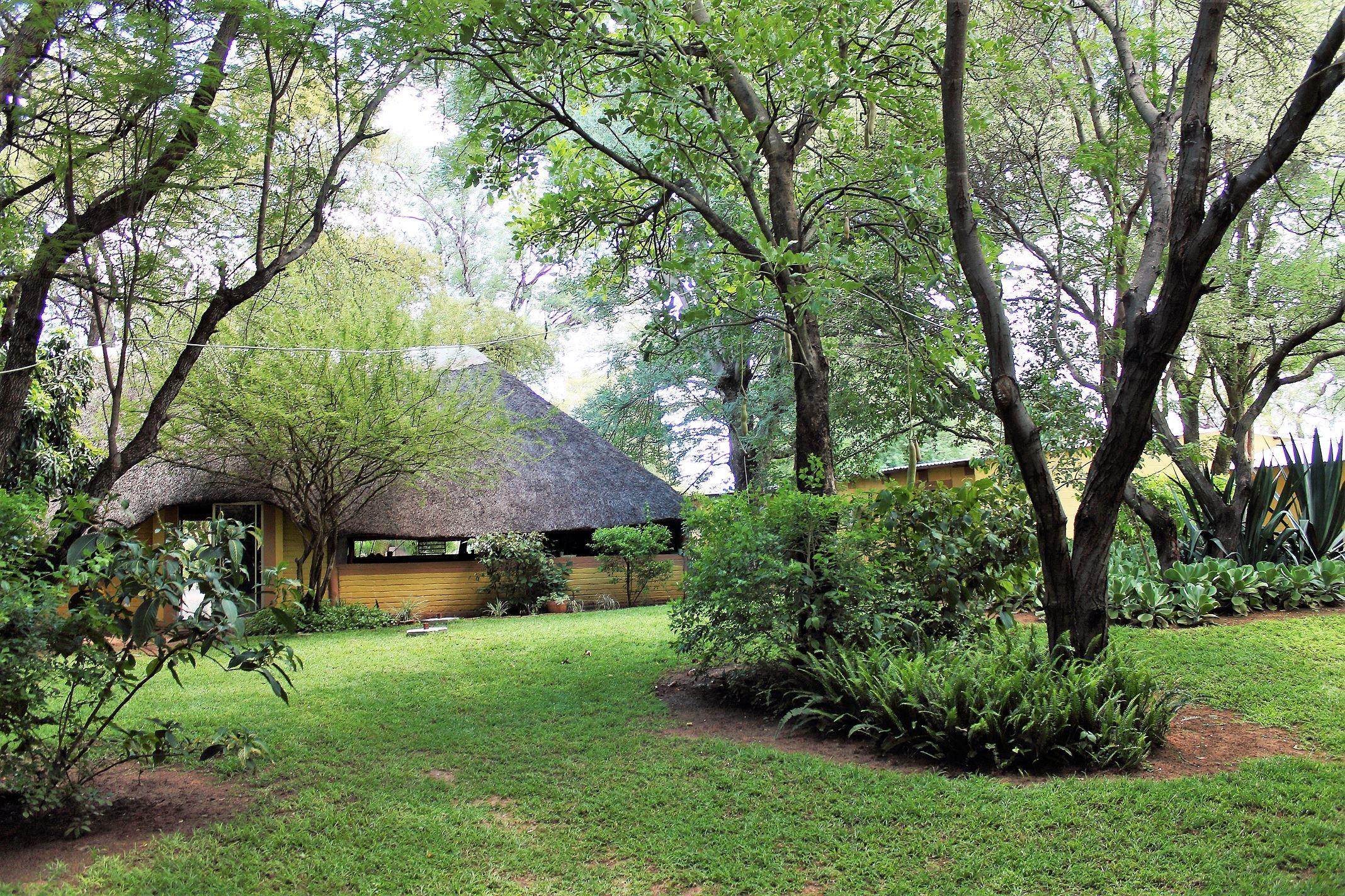 Divundu Guest House offers budget accommodation where the Main B8 Highway crosses the Kavango River in the west end of the Caprivi Strip in Namibia. It is only minutes from the Popa Falls, as well as the Mahangu- and Buffalo Game Parks. GPS coordinates: 18.0965° S, 21.5543° E.There are 4 luxury rooms on the river, 6 private Bungalows with thatched roofs, 30 Backpacker Rooms, and six grassy Campsites available. Guests can enjoy delicious cuisine in the restaurant or café, or peruse the craft centre.Activities in the area include game park drives, river rafting and gui
