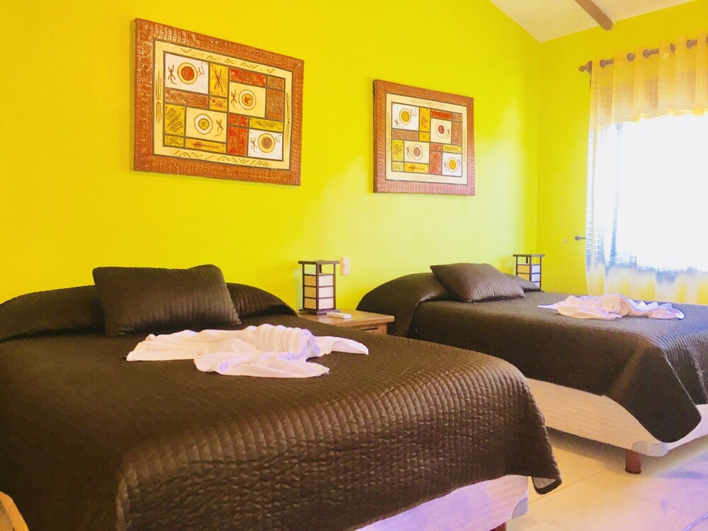 Dolce Vita Caribe Bed & Breakfast is located in Playacar Phase 2, only 500 meters from the beach. With 2 floors, 4 bedrooms and enough capacity to accommodate up to 10 guests, this is the perfect vacation retreat for you are looking for. Decorated in warm colors, it has been equipped with everything you need to enjoy a quiet holiday. The ground floor has a cozy living/dining room. All The bedrooms, has king-size bed , a balcony is available in the Deluxe Room. All equipped with air conditioning, hair dryer, WiFi, cable TV. Some offer a minibar, and ceiling fan. A further provision, a big swimming pool, garden park and bicycle hire.