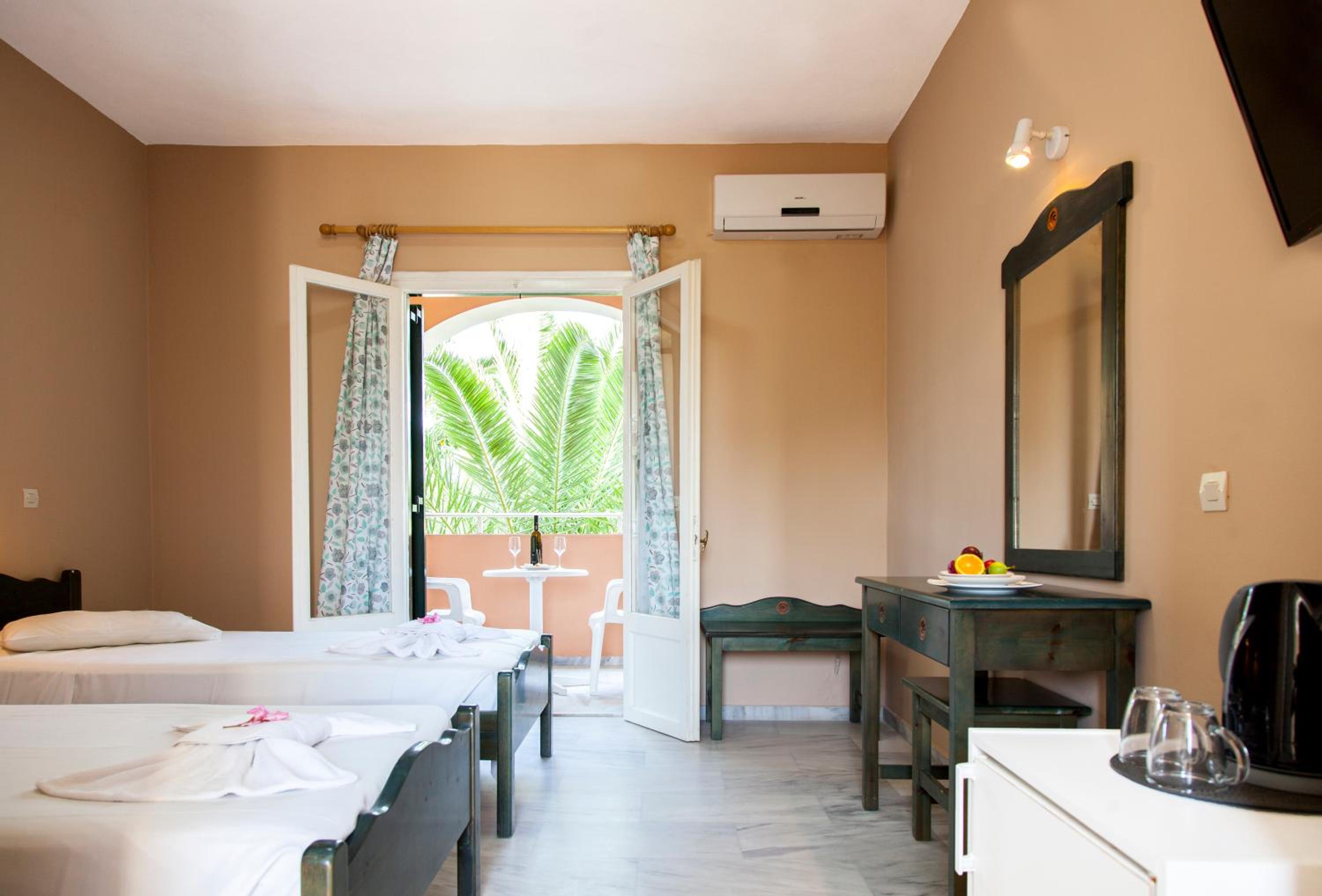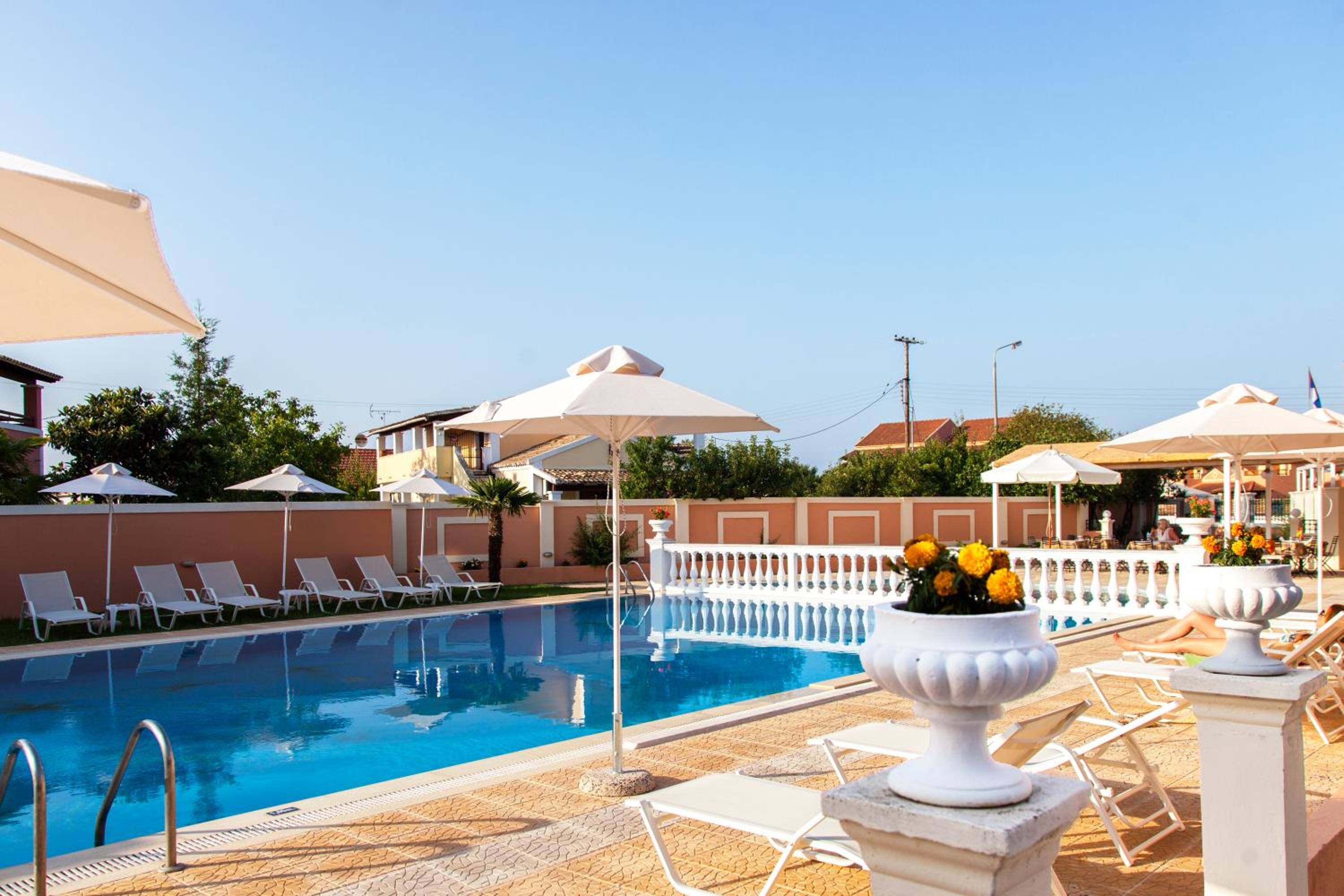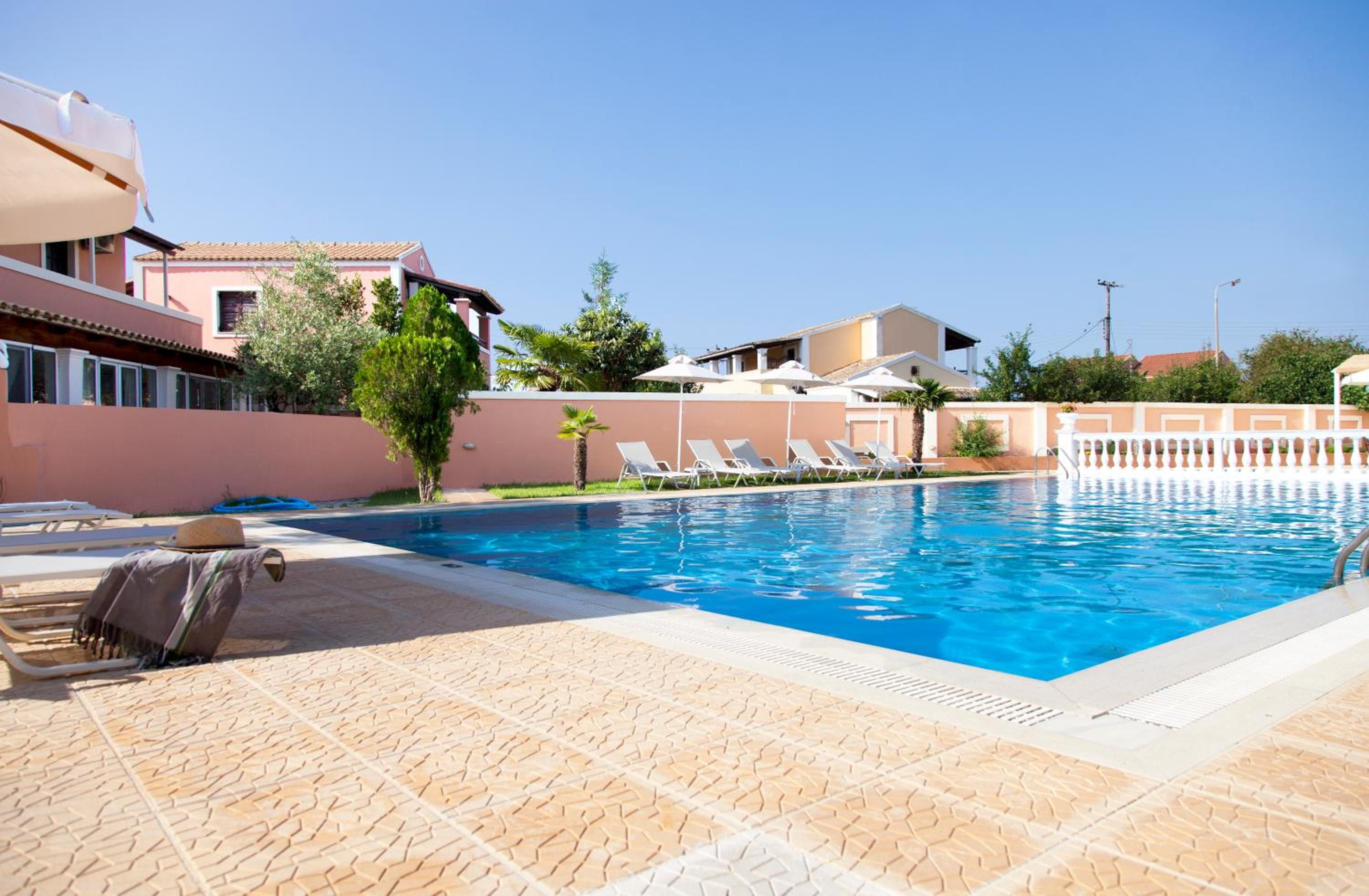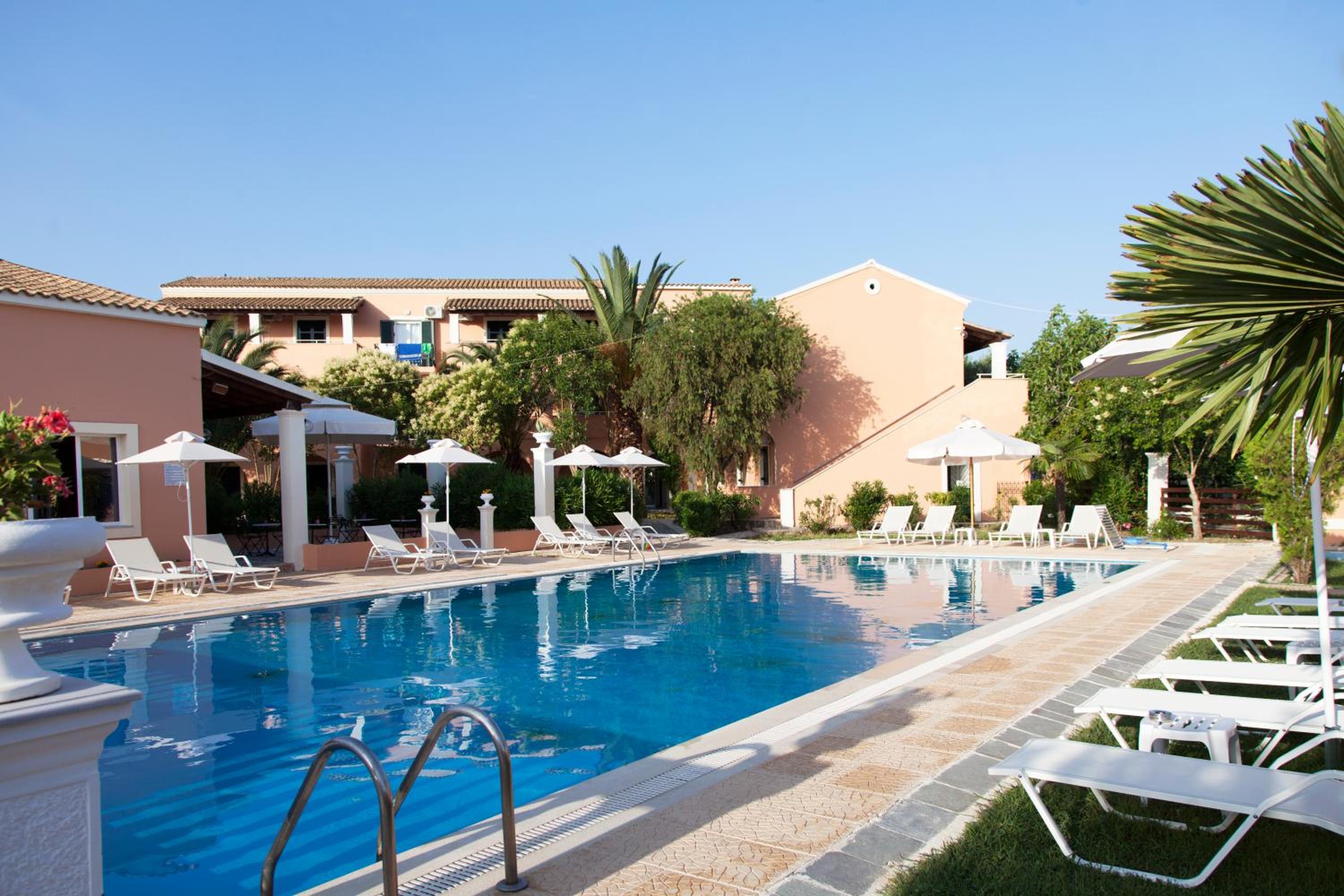 Domenico Hotel is situated in the famous resort of Sidari at Corfu Island, 450 meters from the sea. As from summer season 2016 is operated under new management.It offers an outdoor swimming pool with free sun beds, a restaurant, a cocktail bar as well as air conditioned rooms with satellite TV. Free wife is available in all areas.Sidari main beach is 800 meters away while Canal d' Amour is 1, 5 km away. Within walking distance guests will find local restaurants, bars, shops and super markets.All 27 rooms are equipped with private bathrooms with shower, Flat screen TV, mini fridge and a/c. All of them have a garden-pool view with private balconies.Domenico's restaurant serves every morning continental & Greek traditional breakfast, lunchtime snacks as well as dinner. Outside guests are welcomed to enjoy pool area to enjoy snacks and bar cocktails.