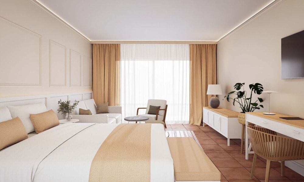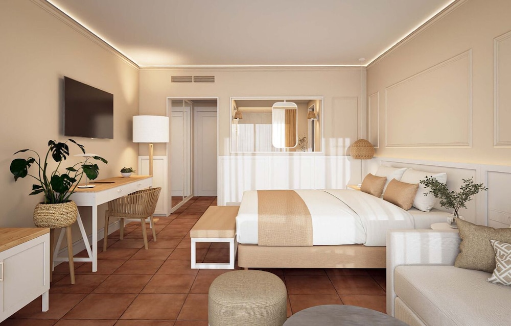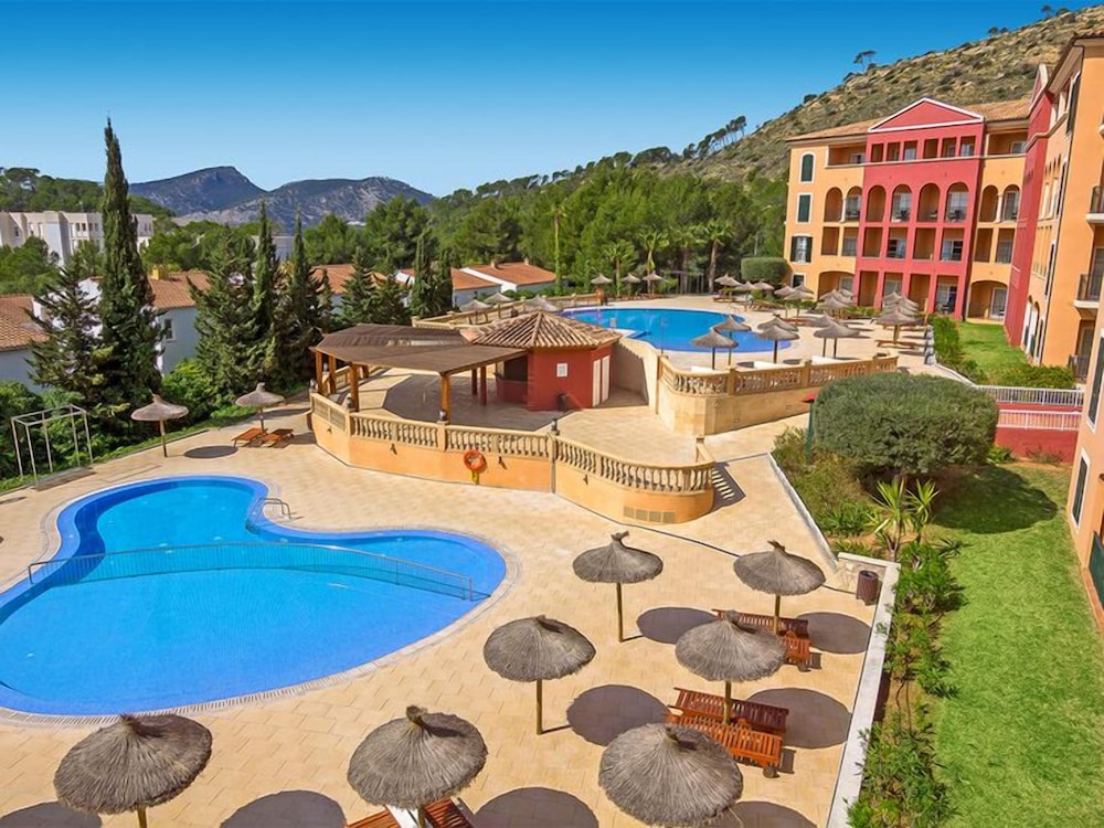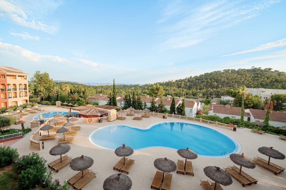 This upmarket hotel is located at the heart of a wonderful pine forest, on the cliffs 800 m above Paguera. Wonderful panoramic views are to be had out over the picturesque town and impressive coastal area. The inviting sandy beach and the centre of Paguera with its many shopping and entertainment venues lie less than 1 km from the hotel. Links to the public transport network lie just 500 m away and there is a complimentary hotel bus service to the beach and the town centre several times a day.Built in the year 2000, this hotel comprises 4 floors with a total of 151 double rooms. Amongst the facilities in this air-conditioned establishment count a foyer with a 24-hour reception desk, a sitting area and 4 lifts. There is also a bar with an inviting outdoor terrace and an air-conditioned restaurant with a non-smoking area on offer to guests. Furthermore, a conference room (capacity of 80 persons), a TV corner with satellite TV and a public Internet terminal may be taken advantage of. For younger guests there is a kids' club and a playground and those arriving by car may make use of the hotel car park and garage facilities whilst bicycles may be stored in the secure facility. Room service rounds off the offerings.The comfortable rooms each come with a bathroom, a hairdryer, a makeup mirror, a tower drier (during the winter), a direct dial telephone, satellite/ cable TV (music channels), a radio, Internet access, a minibar/ fridge, air conditioning, central heating, a furnished balcony or terrace and a hire safe.