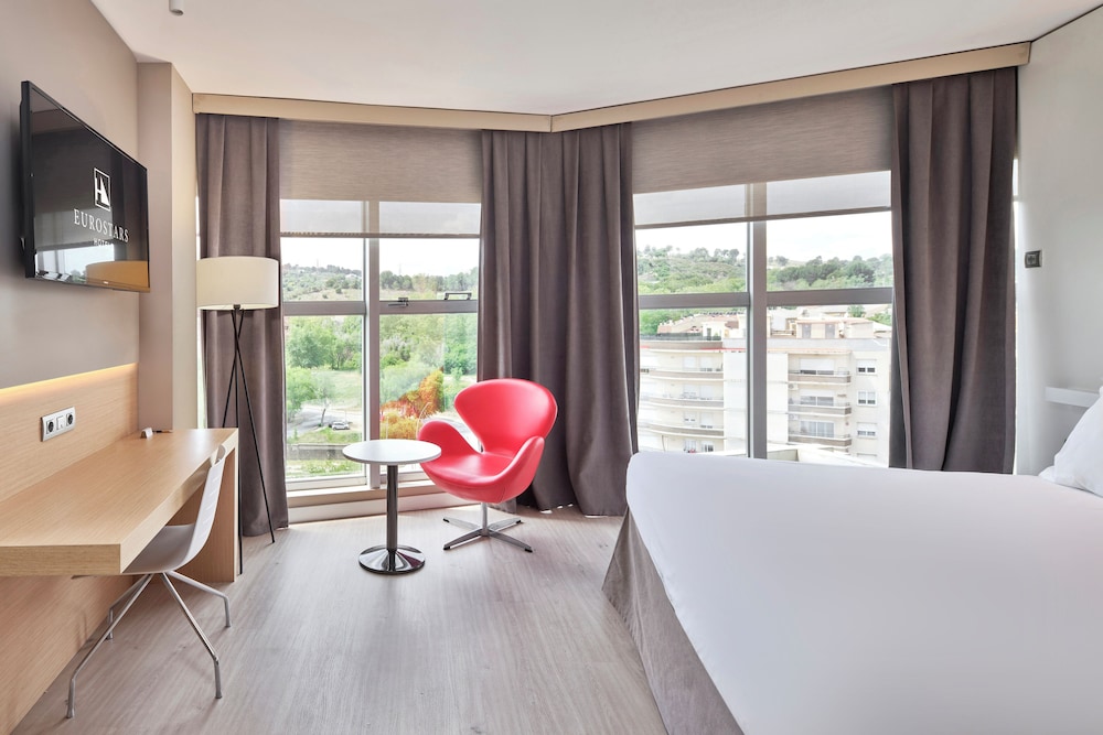 This upscale hotel is located in the city centre of Terrassa. The hotel lies just 18 km away from Barcelona. Guests will find themselves within easy driving distance of a wide range of cultural, historical and artistic attractions. A wide range of shopping, dining and entertainment opportunities can also be found nearby. This hotel enjoys an attractive design, welcoming visitors with warm hospitality and friendly service. The guest rooms offer a haven of peace and serenity, in which to completely relax and unwind. Guests can enjoy an energetic workout in the gym, followed by relaxation amidst the tranquillity of the surroundings. The hotel offers a conference room, as well as a restaurant and a bar.
