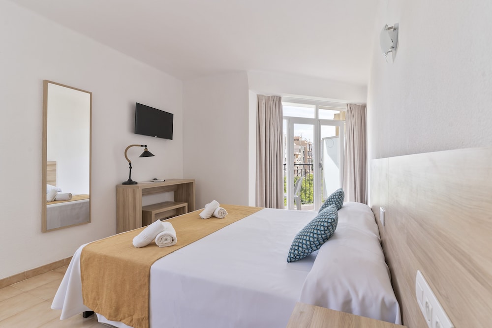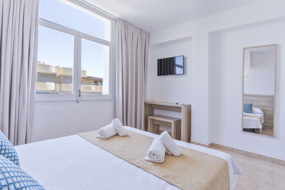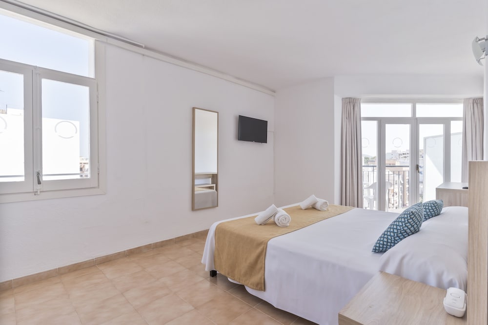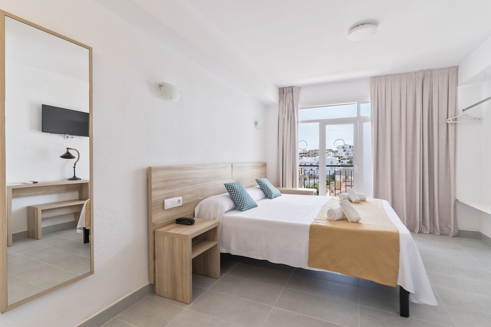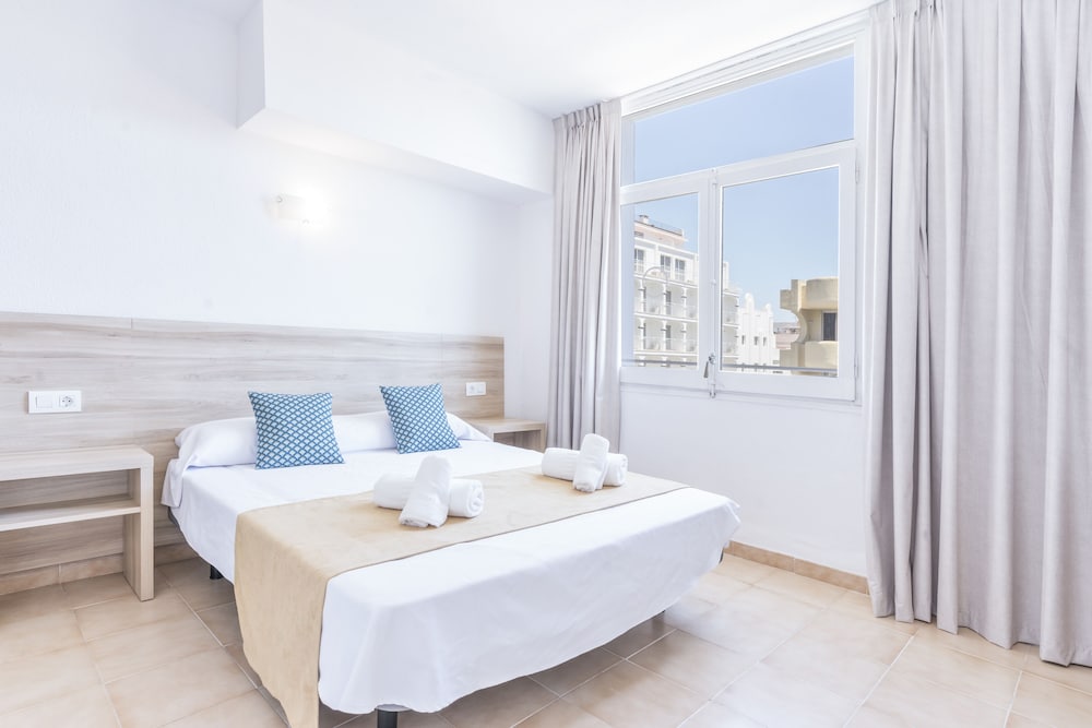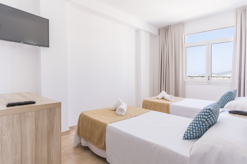 Located just 100 metres from Figueretas Beach the Don Quijote is a 15-minute walk from central Ibiza Town. It features a rooftop swimming pool with fantastic Mediterranean views.Rooms at the Don Quijote are simple and functional with bright décor and tiled floors. Each room comes with free WiFi a free safe and a private bathroom.The Don Quijote Hotel is a short Disco Bus ride from world-famous clubs such as Pachá and Space. There are also many bars and restaurants nearby.The hotel's roof terrace has wonderful views of Ibiza's old town the sea and the neighbouring island of Formentera.Hotel Don Quijote has a TV room and a games room with a pool table.