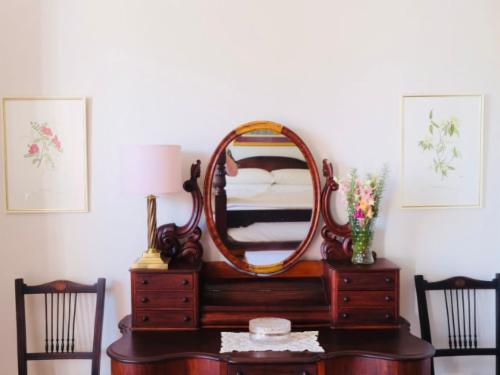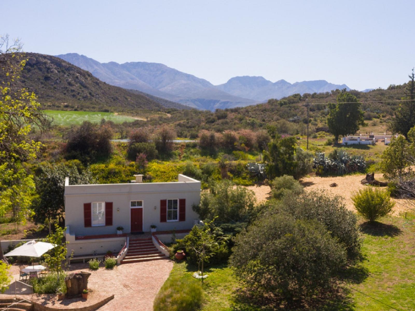 The charming Edwardian-style TUINHUIS is set in the gardens of the 1914 farmhouse and overlooks the farm and has views of the Swartberg- and Kammanassie Mountains. The cottage offers a main bedroom furnished with a 4-poster queen-size bed and a second bedroom with two single beds, and has en-suite bathrooms with showers. A small study is also available next to the main bedroom.