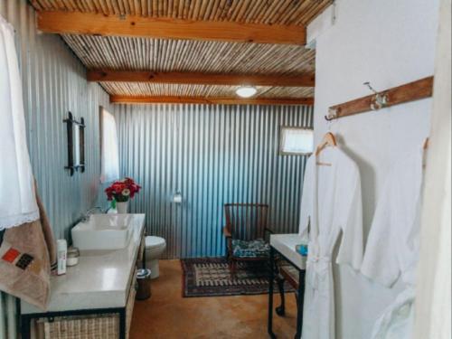 Luxury meets Karoo hospitality at the quaint and secluded KERNEELIA KOTHUIS with wonderful mountain and farm views. The one bedroomed cottage contains a king-size bed that can convert to two single beds and has a bathroom with a shower and a toilet. Hot water is provided by a wood-fired hot water donkey. An extra toilet is available outside the cottage. A three-quarter sleeper couch is available in the living area for a third guest.