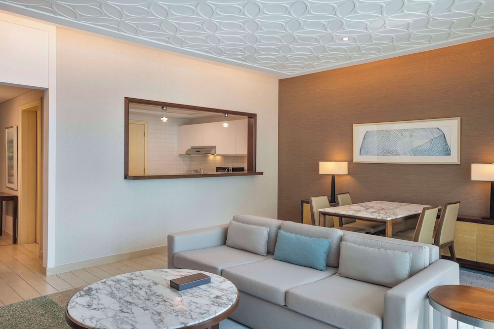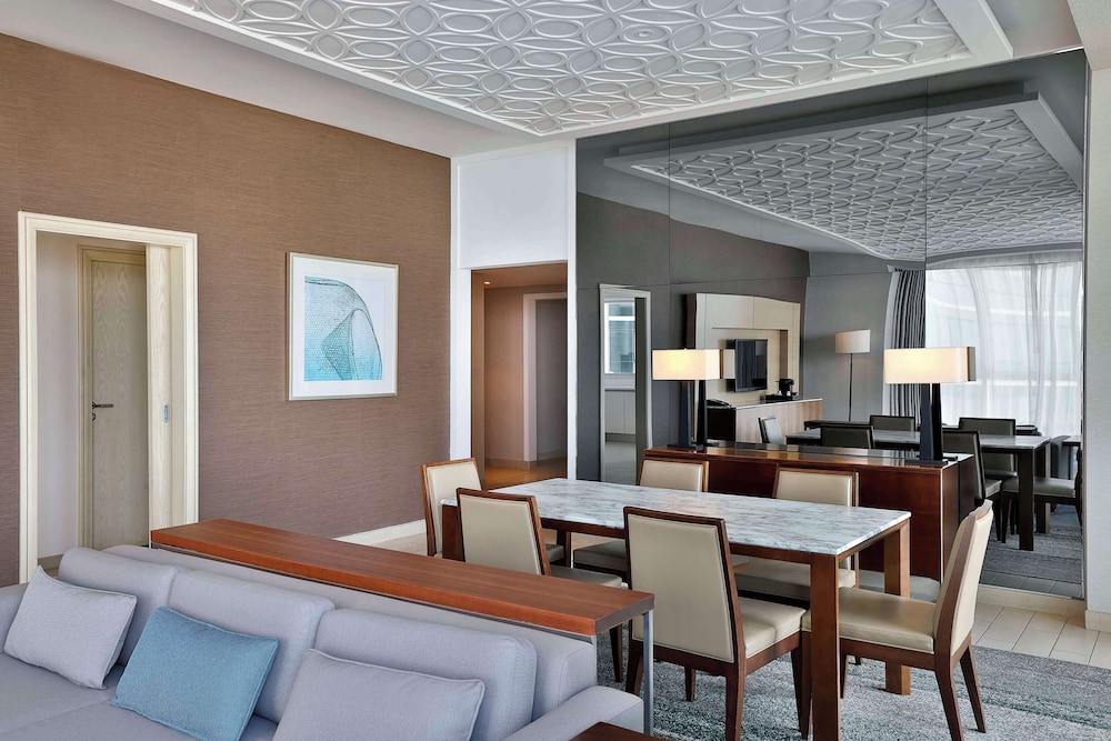 DoubleTree by Hilton Dubai Jumeirah Beach is located in The Walk at Jumeirah Beach Residence, just steps away from The Beach Mall, Dubai's prime destination for seafront dining and entertainment. Our friendly team will welcome you with a warm DoubleTree chocolate chip cookie when you arrive. Free WiFi is available in the public areas. This upscale all-suite hotel offers private access to the beach, beach cabanas and the private pool. All suites have private balconies with views of the Arabian Sea or Dubai Marina as well as a separate living room. Start your day with an International breakfast buffet in the relaxed "Gastro Kitchen". Savor Lebanese specialties or catch up with the latest in sports in Al-Maeda restaurant on the first floor. Enjoy a light lunch or a cool drink in the pool bar, Areia.