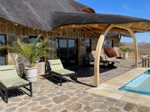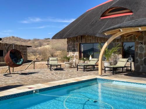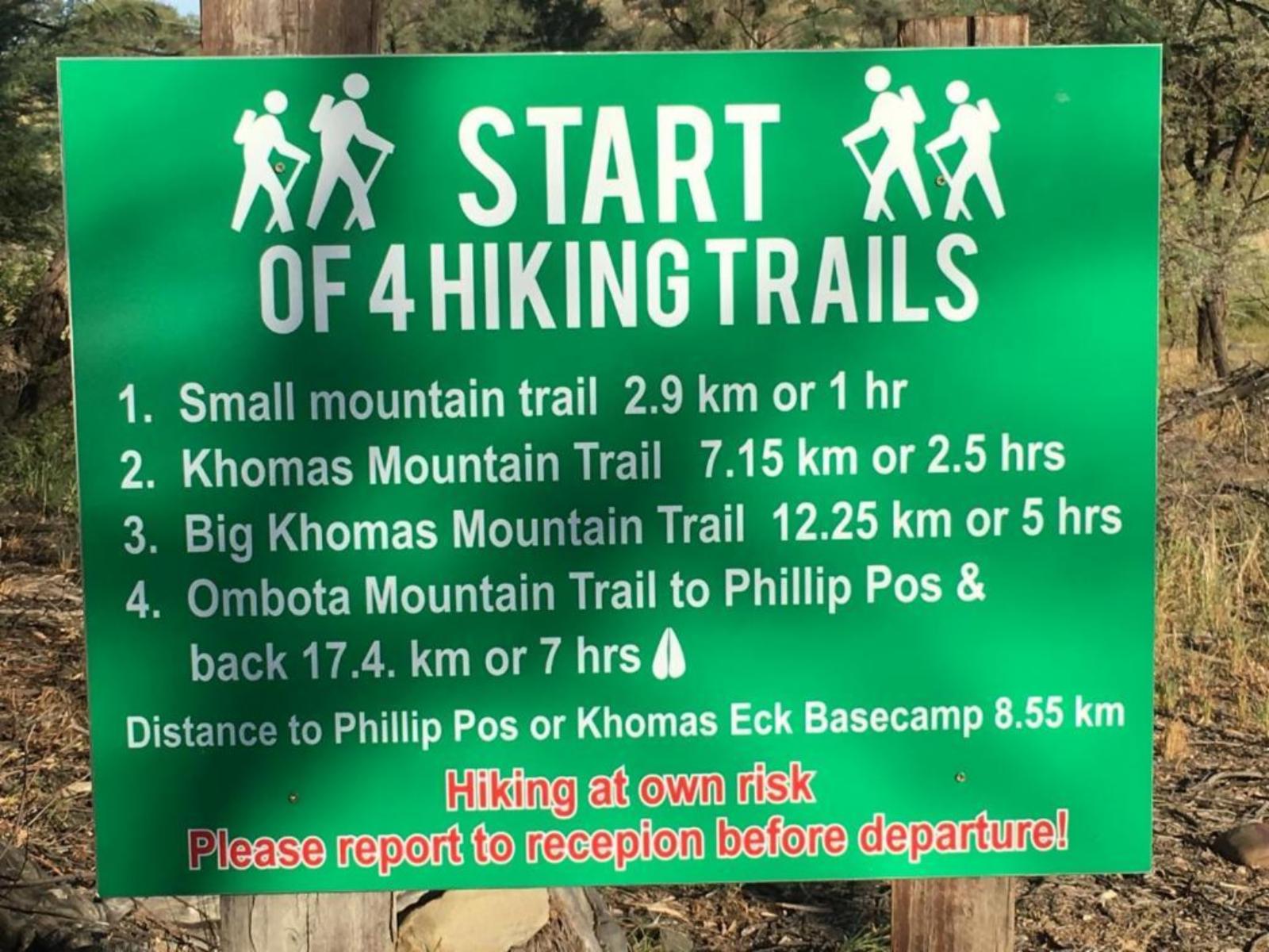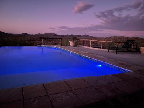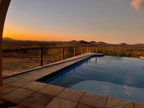 Adventure excellent cheetah and leopard drives and see about 15 different species of game and rich birdlife on the safari game drive. A early morning special mountain drive with different view points and the possibility to see the rare and endemic Hartmann mountain zebra is offered free if you stay two or more nights. Feel space, clean air and tranquility or enjoy four well marked walking trails or horseback riding. Enjoy a swim or the atmosphere around our big pool.