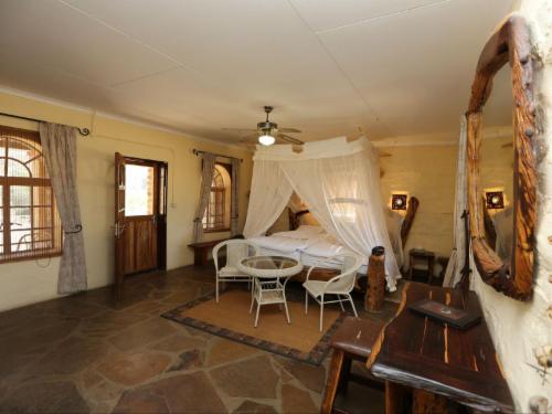 Number of rooms: six double units and one single. All rooms are individually furnished, partly antique, partly specially made furniture. Limited camping, but what you take in you take out not to create a baboon problem.