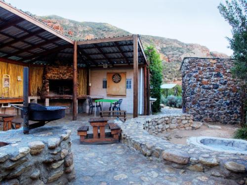 Duiwekloof is an exquisite destination in the Baviaanskloof. The magnificent lodge with stone finishes, low impact roof and driftwood supports make for a beautiful structure which enhances the unique surroundings. The lodge consists of 4 self catering units, a large covered lounge and entertainment area. The natural swimming pool is supplied by water piped from the mountain. There is no electricity on the farm. Lights, warm water, stoves and fridges are gas driven. Facilities are suitable for the physically disabled. Please take note that a R200 refundable breakage deposit is payable on arriva