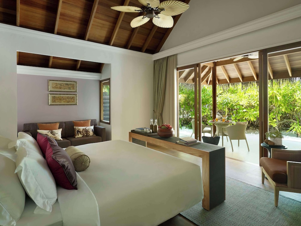 When you stay at Dusit Thani Maldives in Mudhdhoo, you'll be on the waterfront and within the vicinity of Kihaadhuffaru Island Pier and Kihaadhuffaru Island Beach. This 5-star resort is within the vicinity of Dharavandhoo Mosque and Hanifaru Bay. Make yourself at home in one of the 94 individually decorated guestrooms, featuring refrigerators and LCD televisions. Rooms have private furnished patios. Wired and wireless Internet access is complimentary, while iPod docking stations and satellite programming provide entertainment. Partially open bathrooms with separate bathtubs and showers feature deep soaking bathtubs and rainfall showerheads. Pamper yourself with a visit to the spa, which offers massages, body treatments, and facials. After a day at the private beach, you can enjoy other recreational amenities including outdoor tennis courts and an outdoor pool. Additional features at this Beaux Arts resort include complimentary wireless Internet access, concierge services, and babysitting/childcare (surcharge). Enjoy international cuisine at The Market, one of the resort's 3 restaurants, or stay in and take advantage of the 24-hour room service. Relax with a refreshing drink at the beach bar, the poolside bar, or one of 2 bars/lounges. Featured amenities include a 24-hour business center, complimentary newspapers in the lobby, and dry cleaning/laundry services.