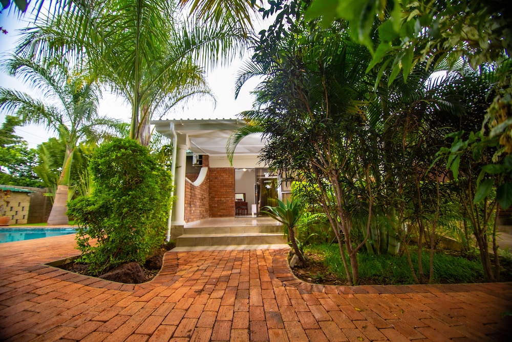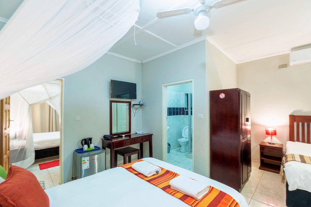 When you stay at Dzimbahwe Guest Lodge in Victoria Falls, you'll be within a 10-minute drive of Victoria Falls National Park and Zambezi National Park. This guesthouse is 2.6 mi (4.1 km) from Victoria Falls and 3.4 mi (5.5 km) from Victoria Falls Bridge. Make yourself at home in one of the 6 air-conditioned guestrooms. Complimentary wireless Internet access is available to keep you connected. Bathrooms feature bathtubs or showers, complimentary toiletries, and hair dryers. Conveniences include ceiling fans and blackout drapes/curtains, and housekeeping is provided daily. Take advantage of recreation opportunities such as an outdoor pool or take in the view from a terrace and a garden. Additional amenities at this guesthouse include complimentary wireless Internet access, concierge services, and a television in a common area. Full breakfasts are available daily from 7 AM to 9 AM for a fee. Featured amenities include a 24-hour front desk and luggage storage. Free self parking is available onsite.