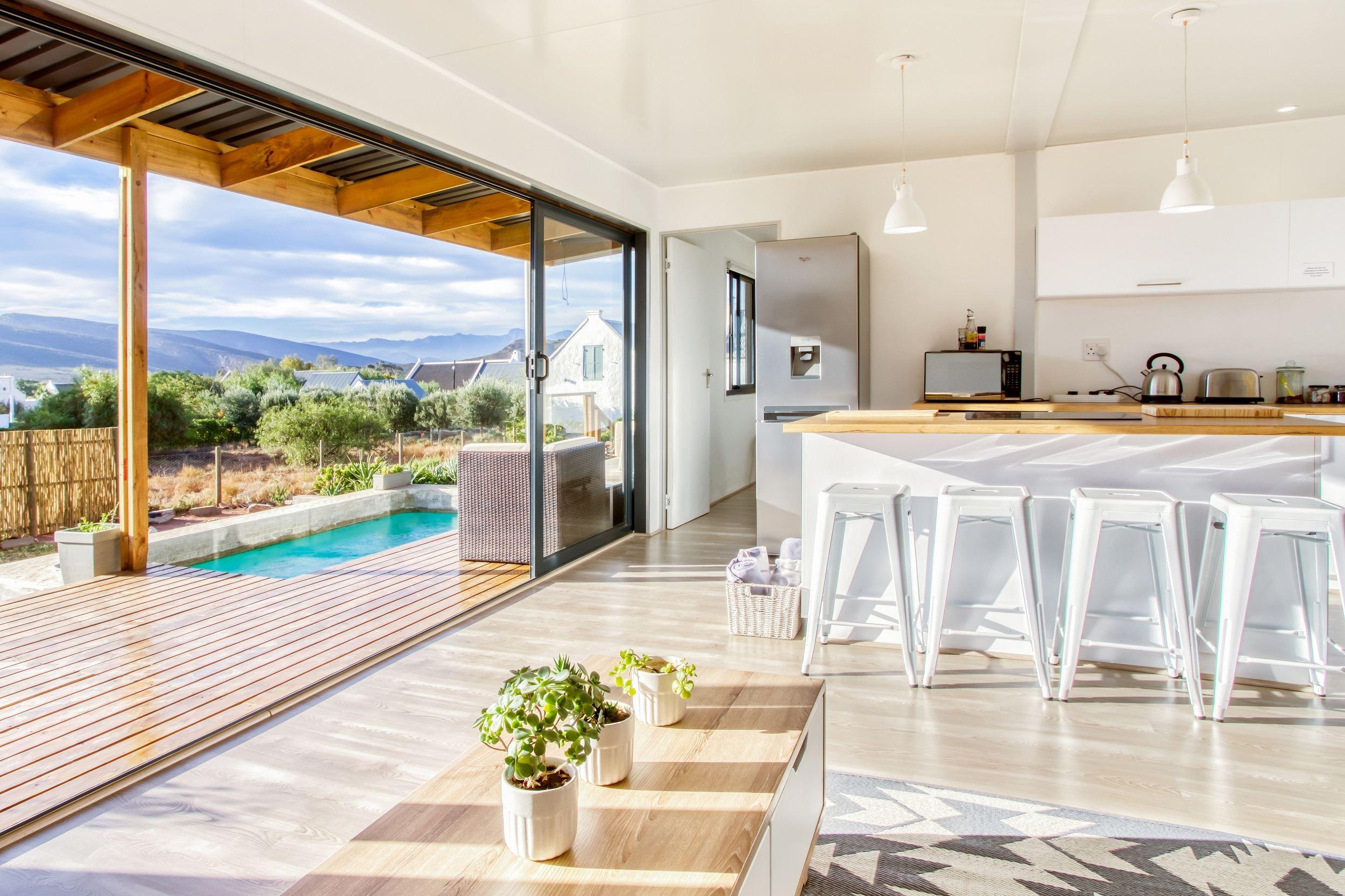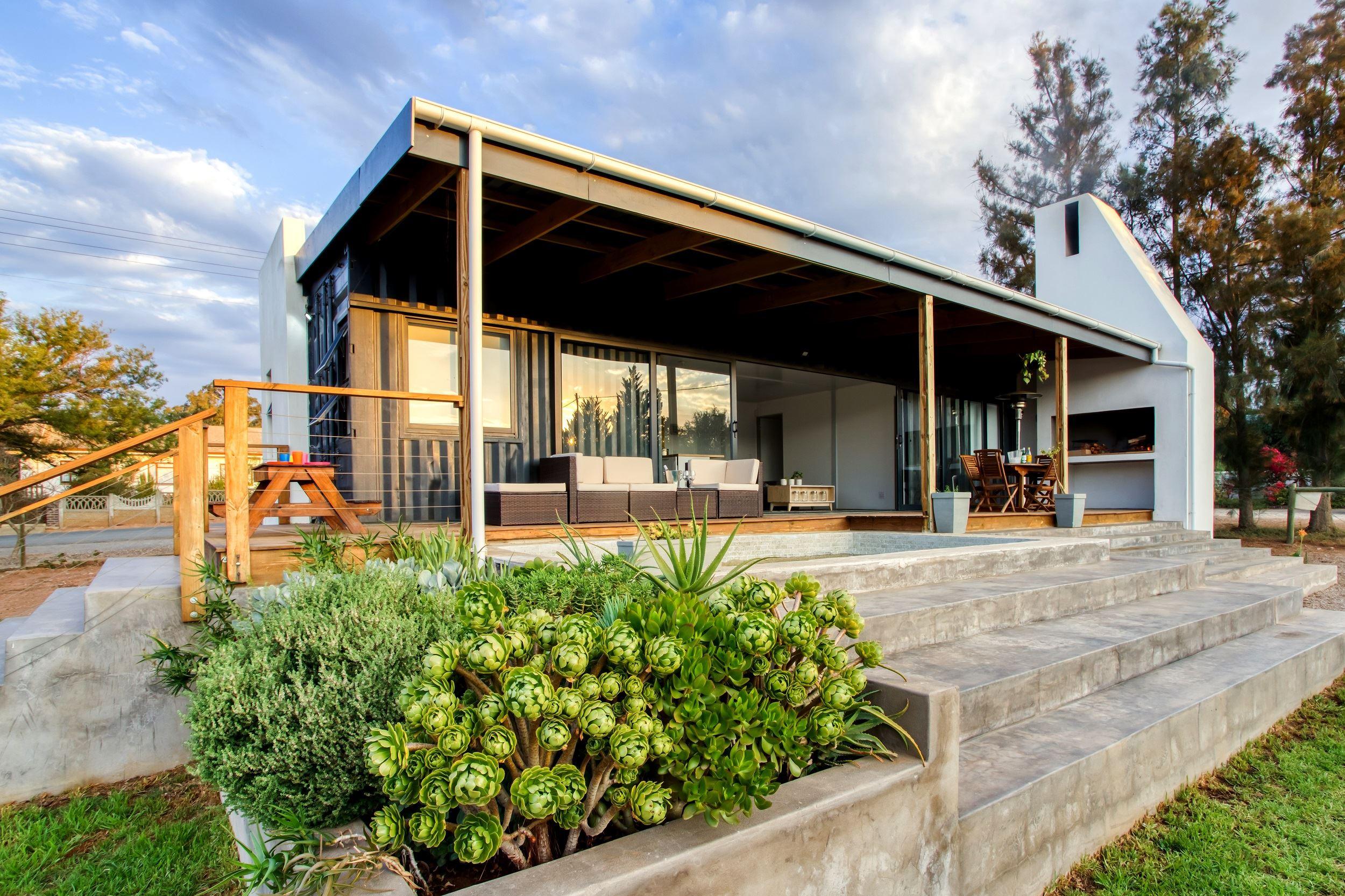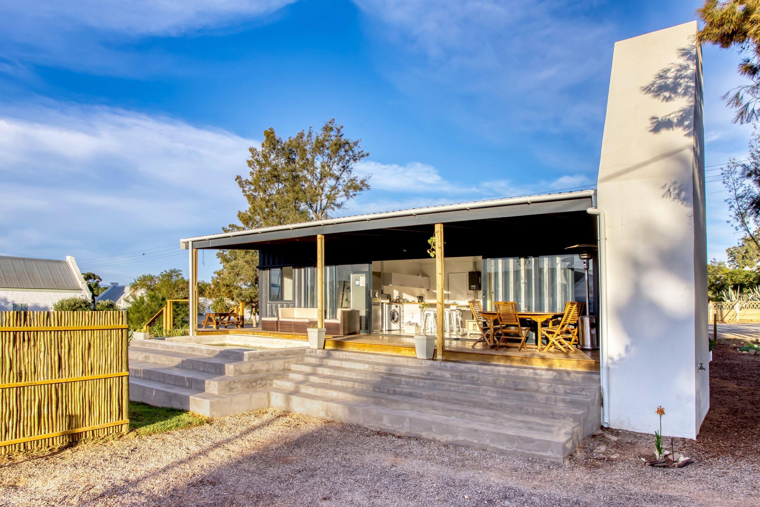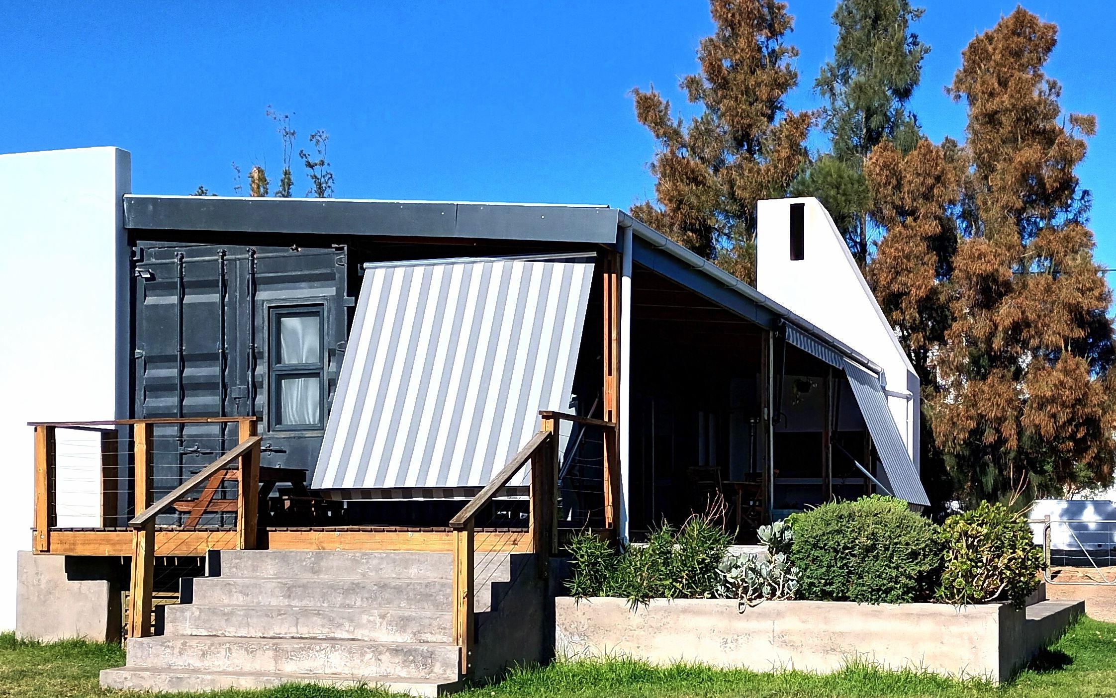 Easy for Dayz is a new concept with an innovative hybrid container self catering house, located in the upper part of the village of McGregor.It has a patio with an outside braai area and splash pool, which is set in a water wise garden. The cottage sleeps four people comfortably in two bedrooms (one with a double bunk) and has two bathrooms. The master bedroom has an en-suite bathroom. The open plan kitchen is fully equipped with most amenities including a top of the range dishwasher and washing machine.Linen, bath towels and pool towels are provided.