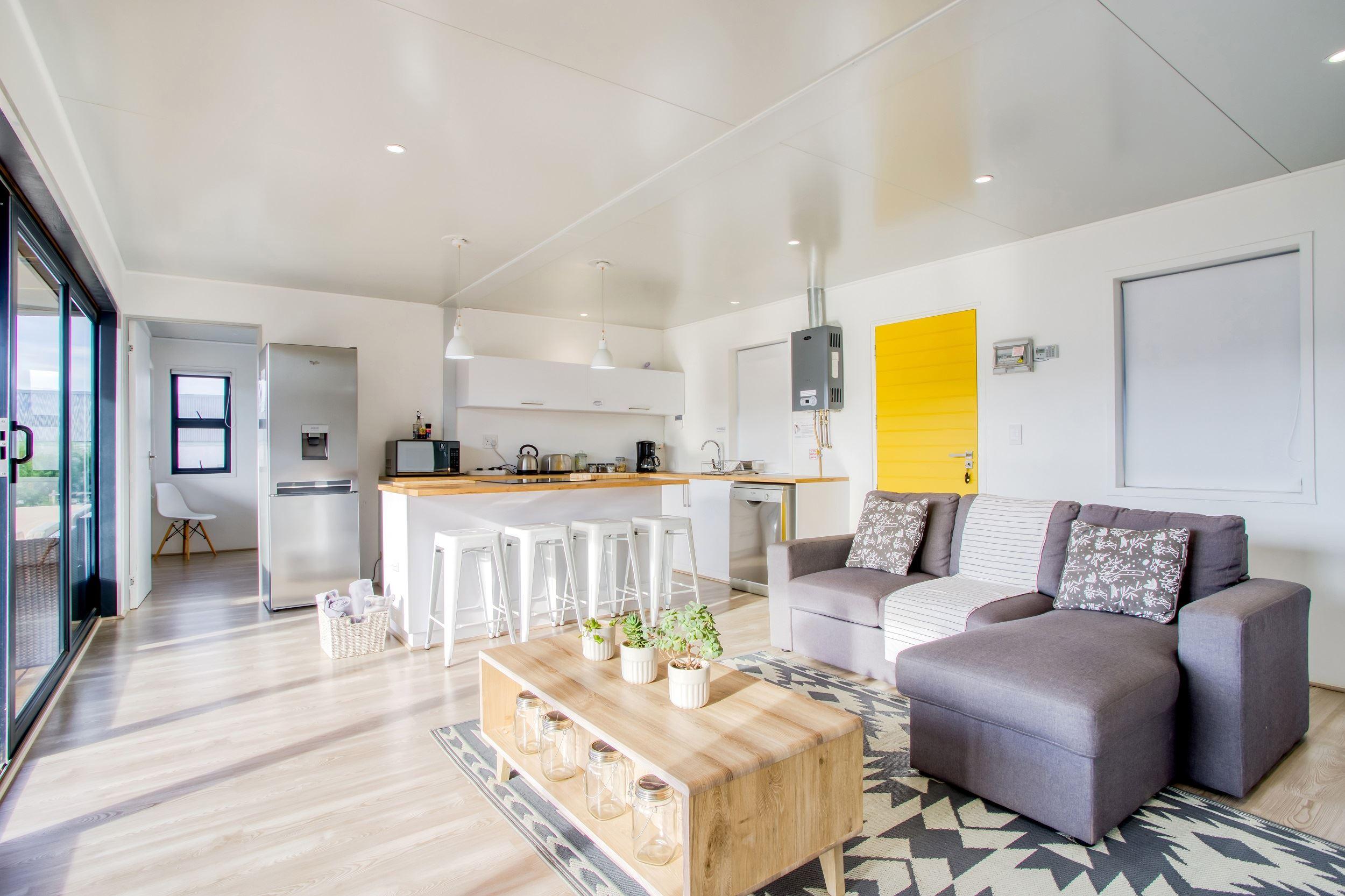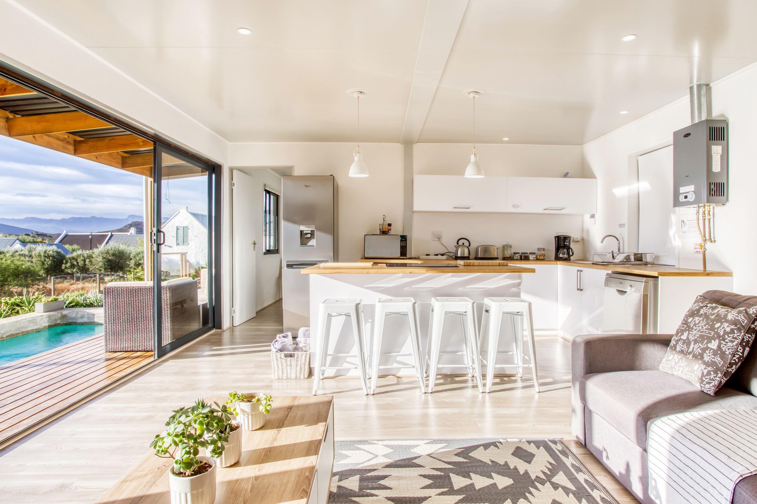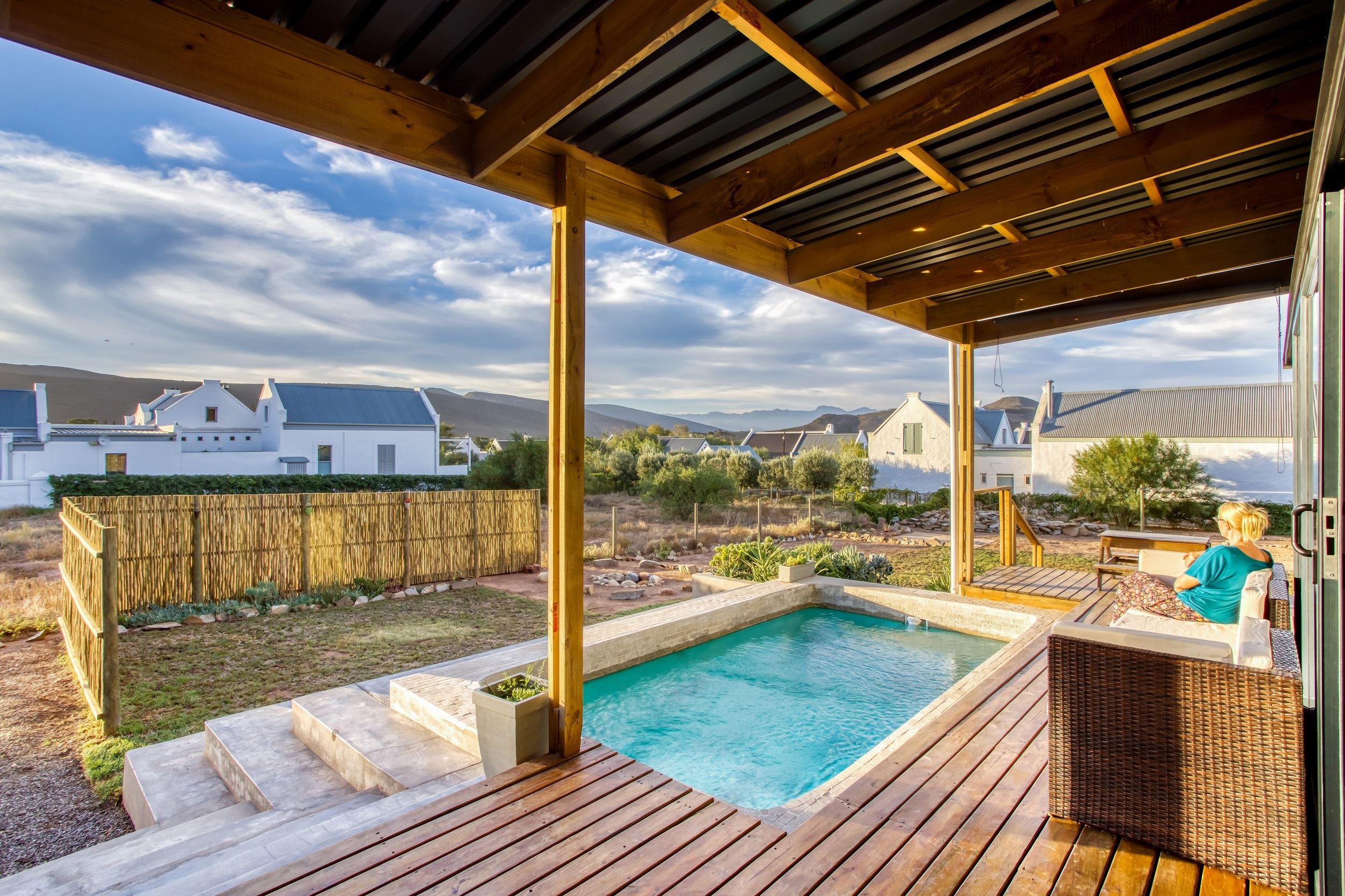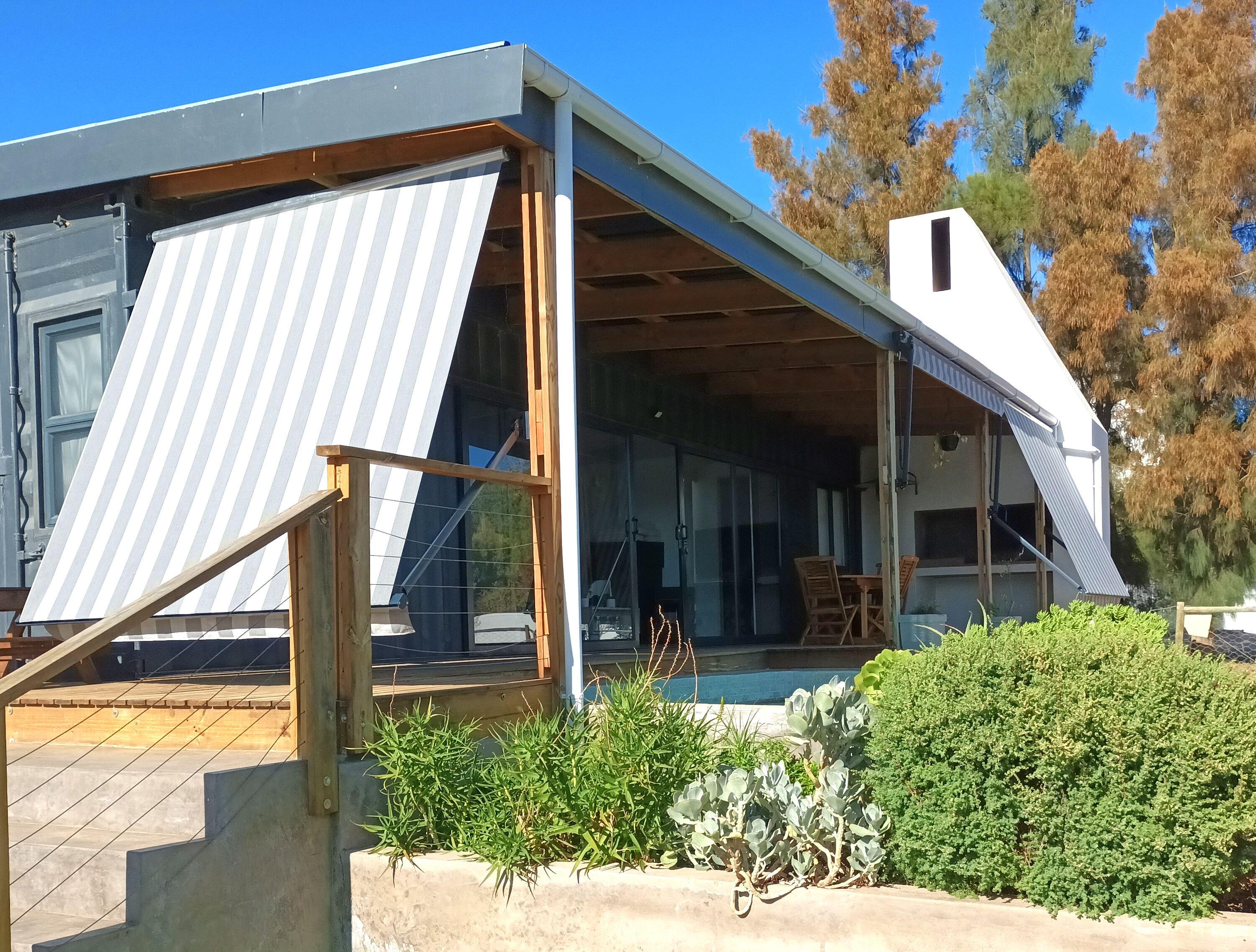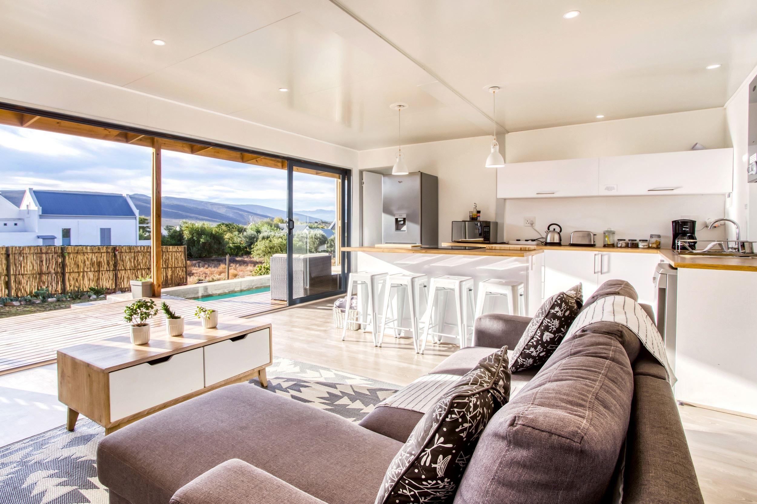 Easy for Dayz is a new concept with an innovative hybrid container self catering house, located in the upper part of the village of McGregor.It has a patio with an outside braai area and splash pool, which is set in a water wise garden. The cottage sleeps four people comfortably in two bedrooms (one with a double bunk) and has two bathrooms. The master bedroom has an en-suite bathroom. The open plan kitchen is fully equipped with most amenities including a top of the range dishwasher and washing machine.Linen, bath towels and pool towels are provided.