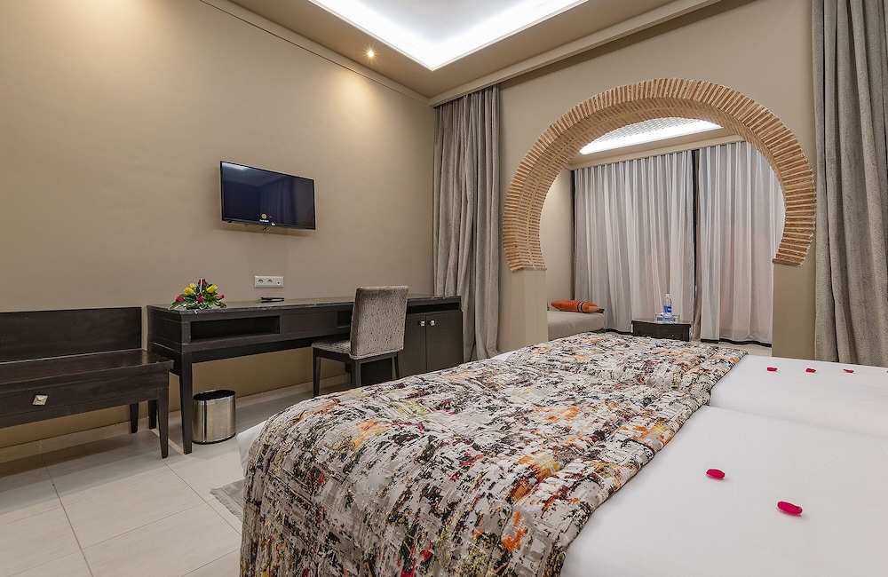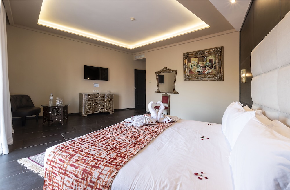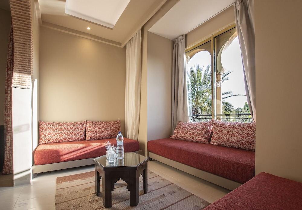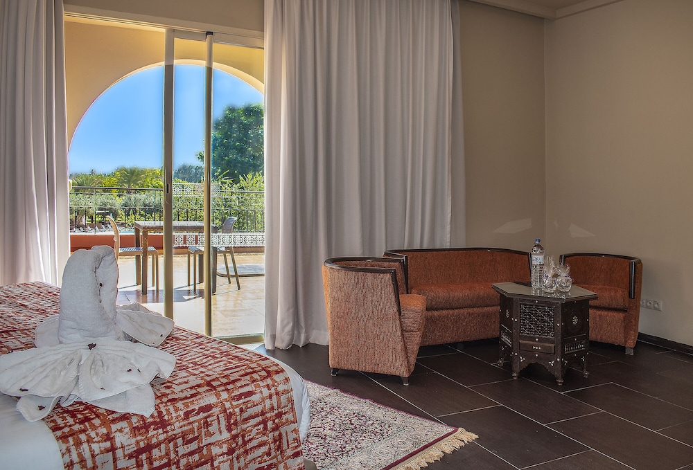 Surrounded by beautiful Andalusian-style landscaped gardens, Eden Andalou Aquapark & Spa si a family hotel enjoys magnificent views to the Atlas mountain range. It perfectly combines wonderful Moorish architecture based on palaces of the tenth century with twenty-first century amenities. Features include an adjacent fantastic water park "Eden Aquapark" with 17,000 m² of slides and attractions (open all year depending on weather conditions). As well as a 1,600 m2 spa area. Downtown Marrakesh can be reached within a 20 minutes' drive. A perfect place for couples and families with children. The All Inclusive formula includes for each 24 hours a breakfast, a lunch, a snack and a dinner and drinks from 10:00 am to 11:00 pm. Some restaurant and all Spa services & fitness are with supplement. Free Wi- Fi in the hotel's public areas and rooms.