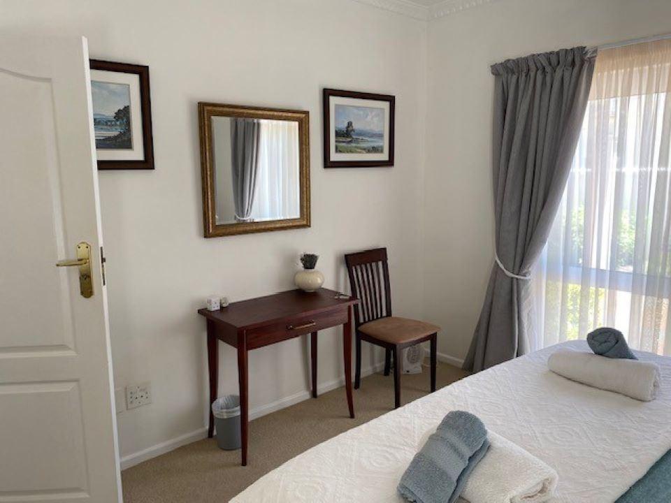 Edmonton Cottage has solar power and an inverter - you will hardly notice any Load Shedding. Edmonton Cottage is a delightful two bedroom cottage with private pool on the secure Erinvale Golf Estate. Both bedrooms feature en-suite bathrooms. The master bedroom has a separate bath and shower, while the second bedroom has an en-suite shower room. There is a spacious central living area comprising a large open-plan kitchen, dining room/lounge with a study area. Both bedrooms and the living room have individual air conditioners for heating or cooling.Doors open onto a large covered p